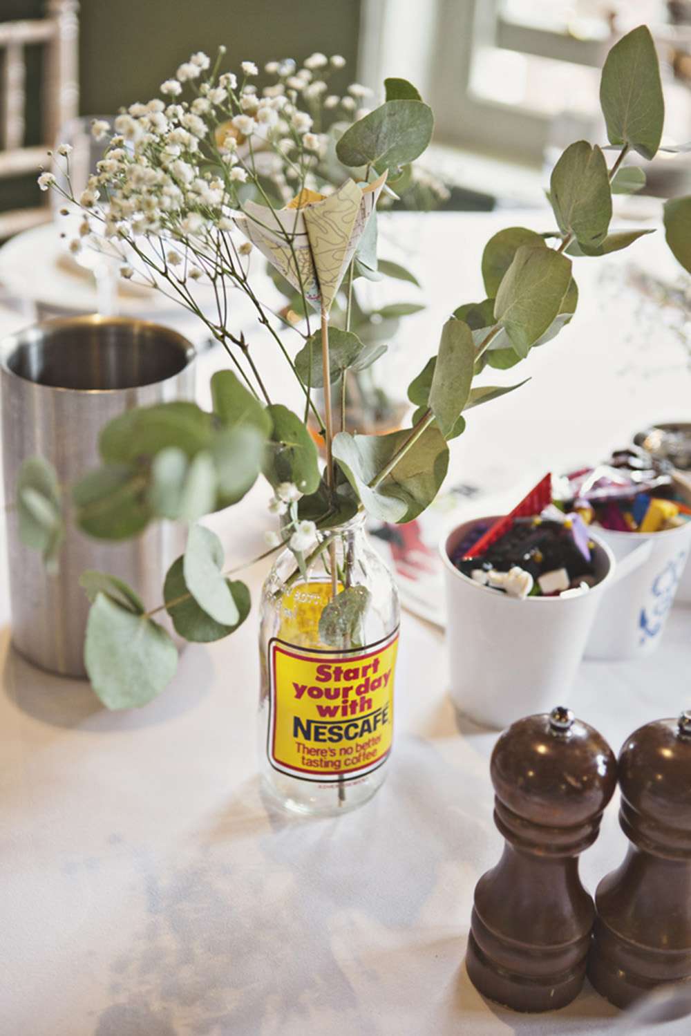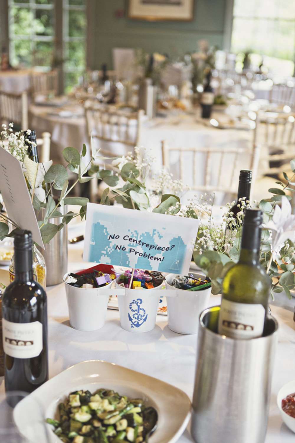 “My dress came from Honeypie Boutique and I bought it online. A lot of the wedding was DIY and our friend Laura made all the paper flowers. Another friend, Rachel, helped me decorate the jam jars that the flowers were in. I made the signs for the tables in frames with scrabble letters, chalk pens and a piece of slate from my mum’s garden! Jay created the build-your-own centrepiece sign to go with the Lego too.”