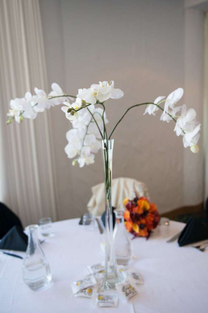 Their intimate reception was held at Moonraker Restaurant. It was also at lunchtime instead of the evening. “We didn’t want a big, lavish party”, she continued. “The important part was that we would be married in a beautiful location with our family and friends followed by good food and drink. We had an iPod playing background music the whole lunch with only a break for my Person (Maid of Honour, bridal party, ring bearer, security detail, and designated driver all rolled into one) to give an amazing toast. We don’t dance, so we didn’t have a DJ/ band or dance floor.”