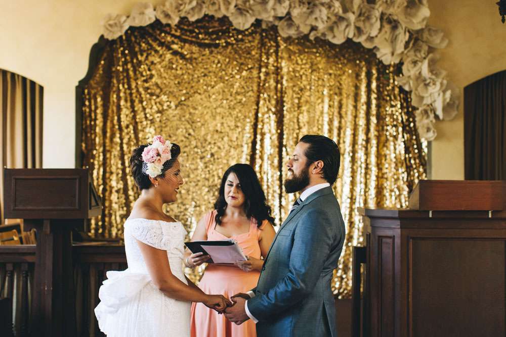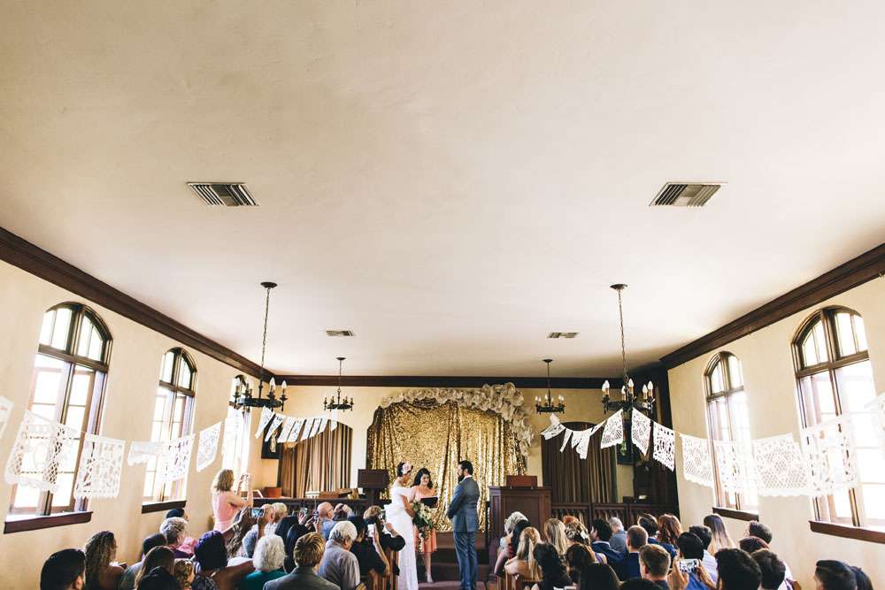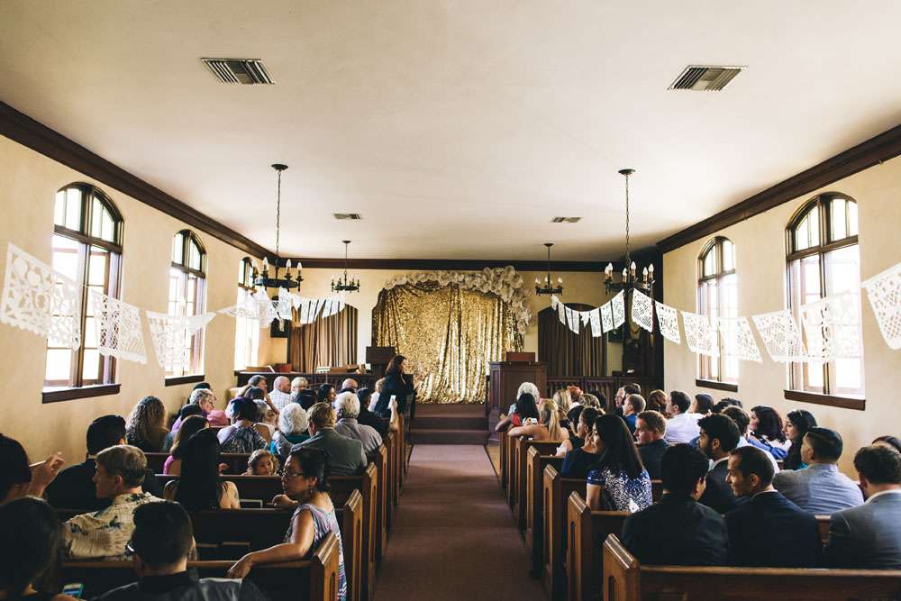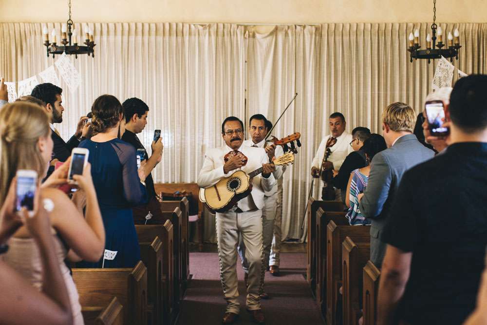 Their ceremony was officiated by a friend. “Maybe the best idea that I ever had was asking Lauren to officiate the ceremony”, she explained. “We don’t know any official officiants and I just couldn’t bear the thought of a stranger performing our ceremony. We knew we wanted something non-traditional, but also personal. She asked us questions (separately) in order to weave the answers throughout the ceremony – which made for many surprises and delights. When the guests arrived at the church, they were greeted by mariachi’s all dressed in white. They were so great, I wish we’d had a videographer!”