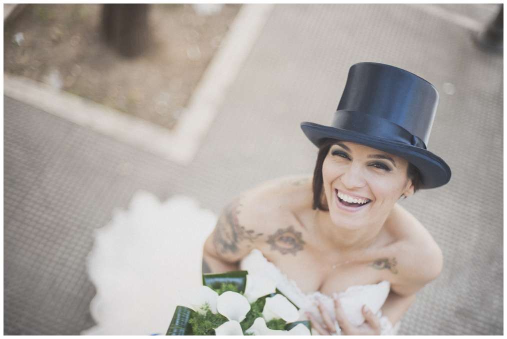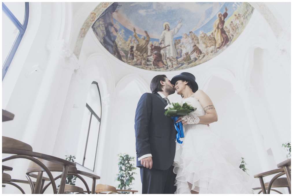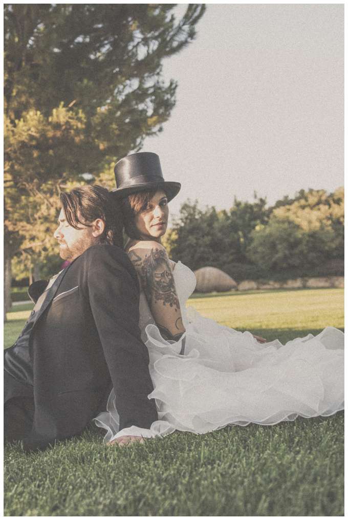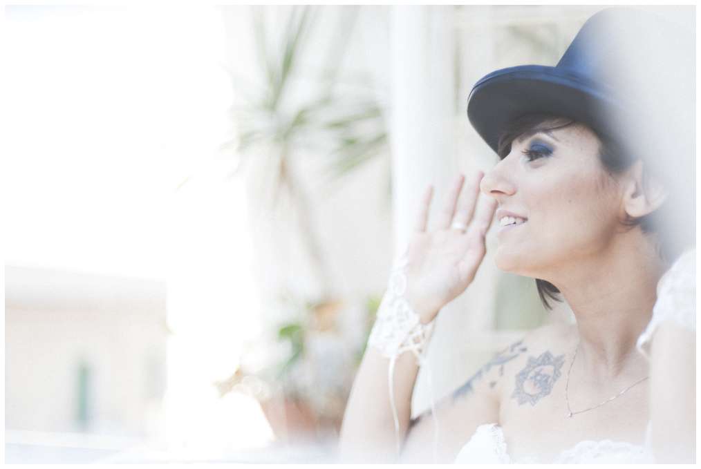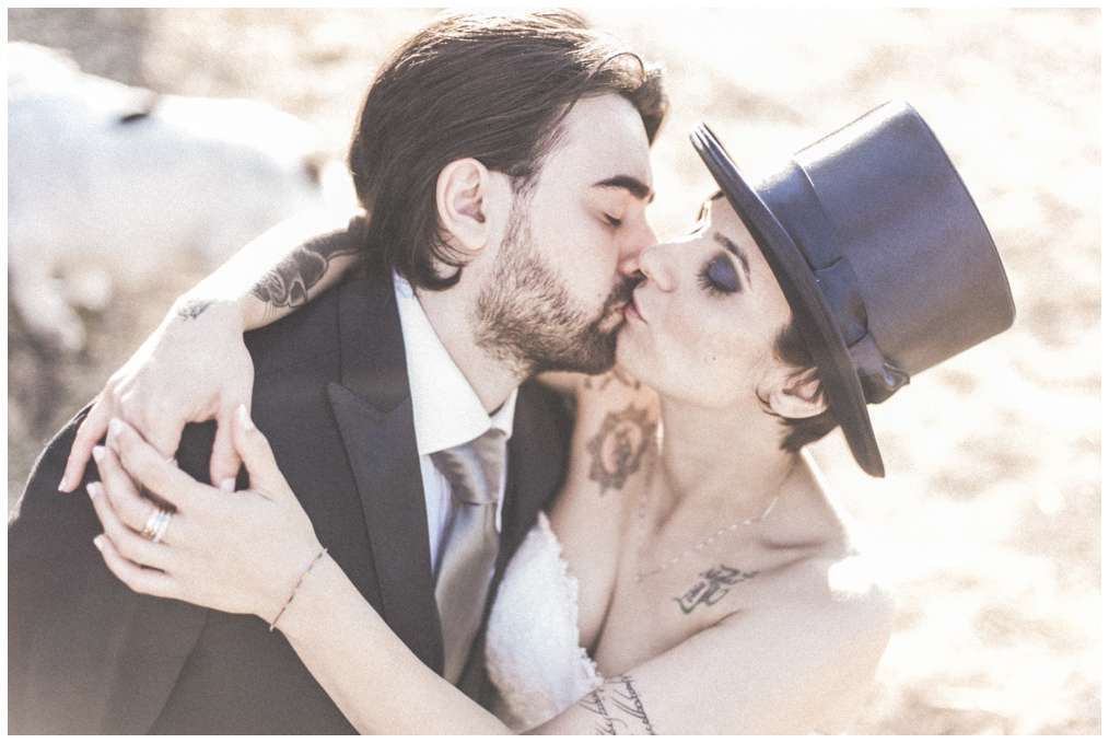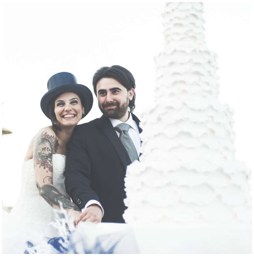 Mj and Fab’s wedding took place at the Residenza San Tommaso hotel in Polignano, southern Italy. “Our theme was ‘nerd rock’!” said the bride. “We Just followed our hearts with everything we picked. We had a live rock back and we didn’t care what anyone thought about our choices! Our ‘flower girl’ was our dog that we adopted from a kennel a year ago. She wore wings and carried our rings!”