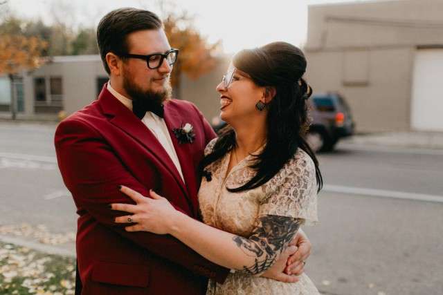 “We have always considered October to be ‘our month’. Our anniversary for when we began dating is October 1, and our first official date involved carving pumpkins and watching horror movies. This quickly turned into our favourite yearly tradition. Our theme was ‘Til Death Us Do Part’.”