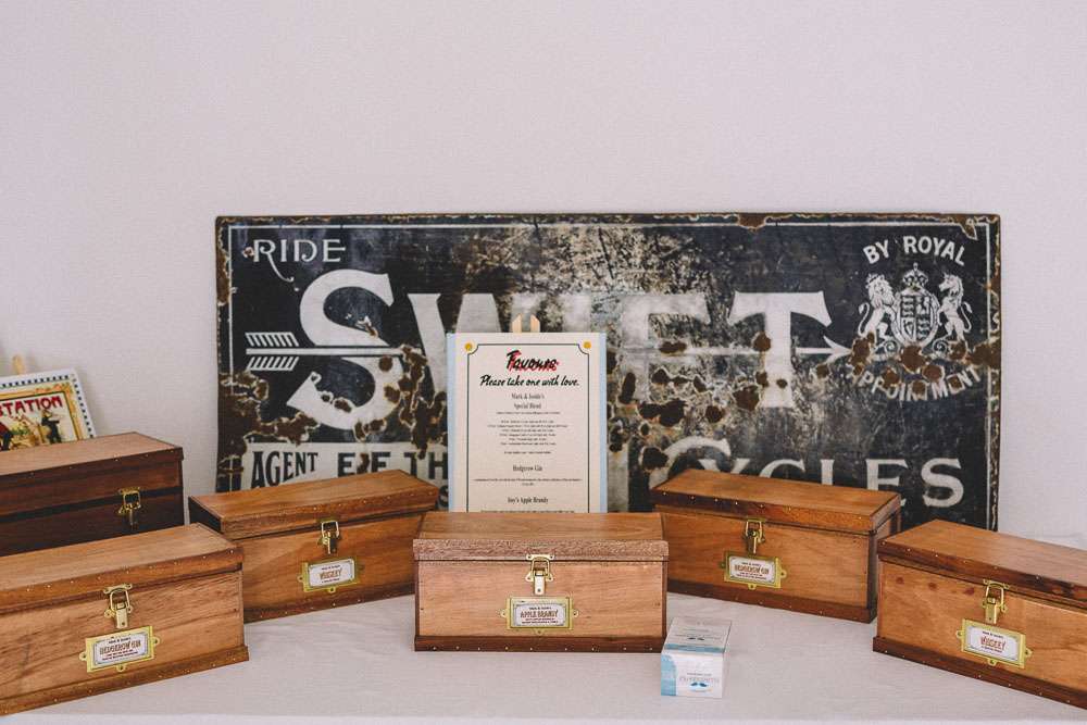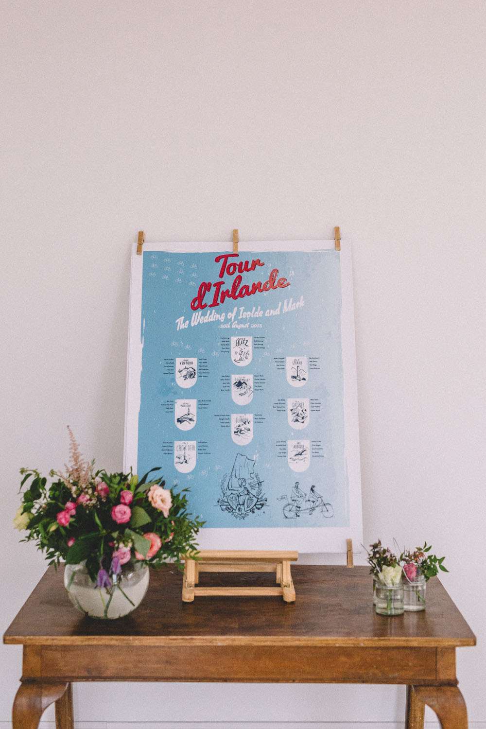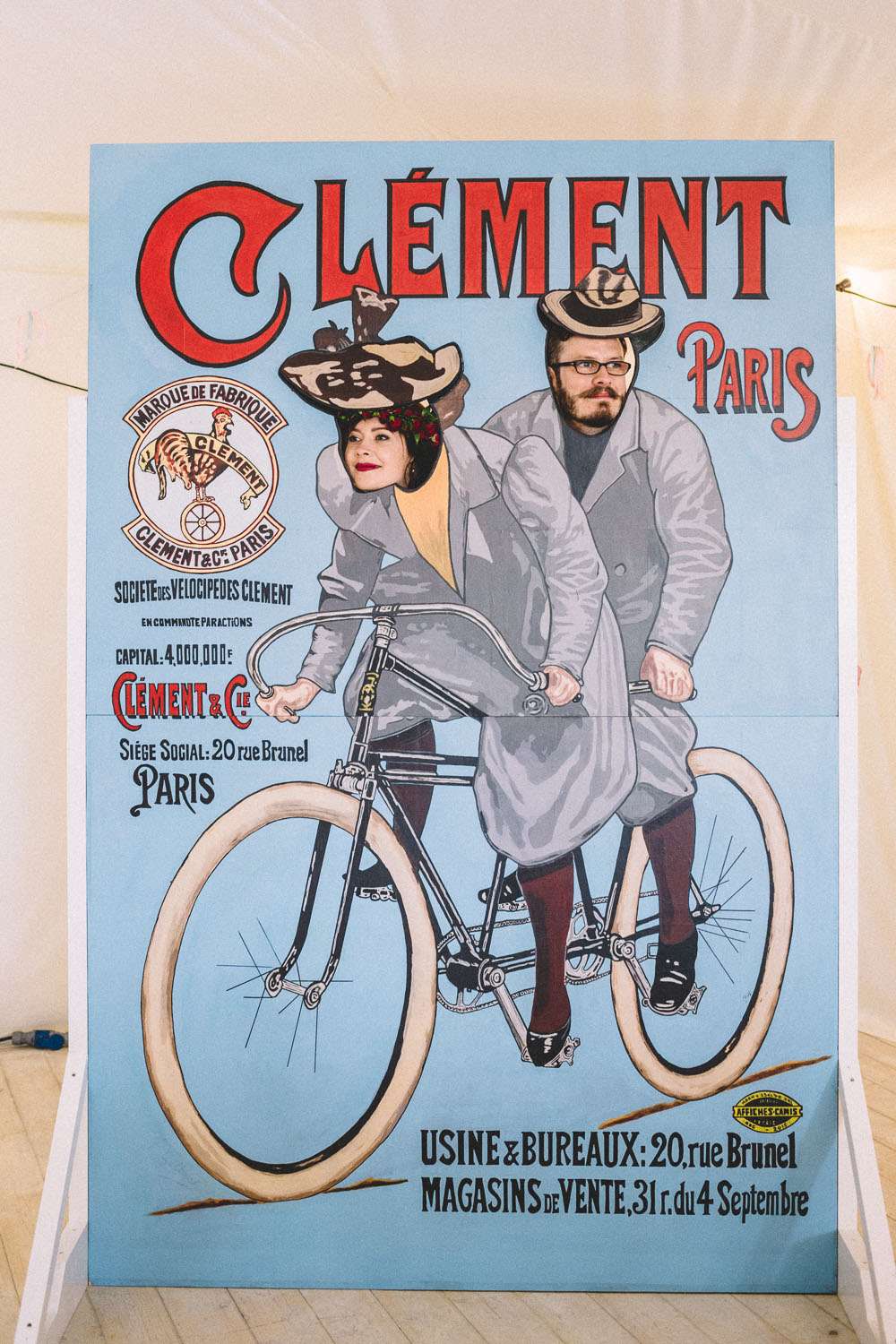 “We really drew on our friends and families talent too”, she continued. “My dad made a giant fairground piece with a cycling theme (the ones you put your faces in for photos). He also designed the wedding favours which were lovely bottles of whiskey. My bridesmaids Lauren and Ursula are both designers so helped with any sewing and any creative things.”