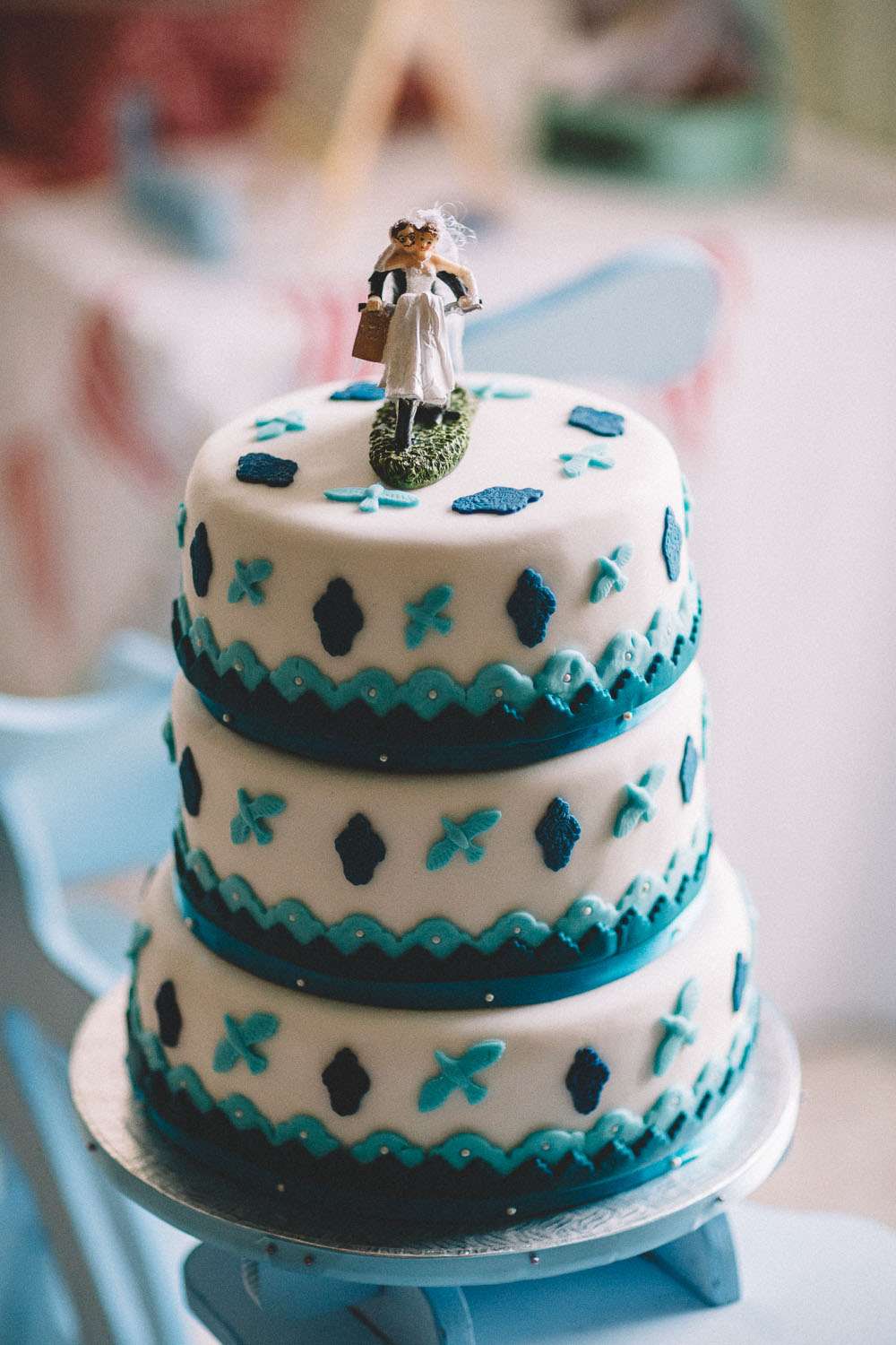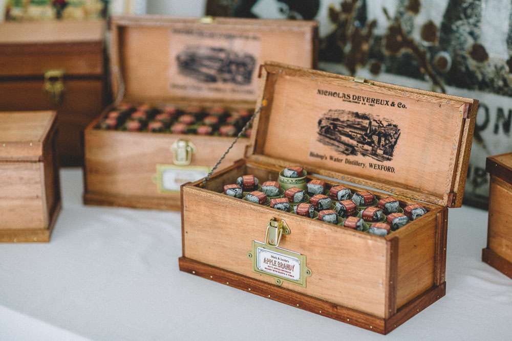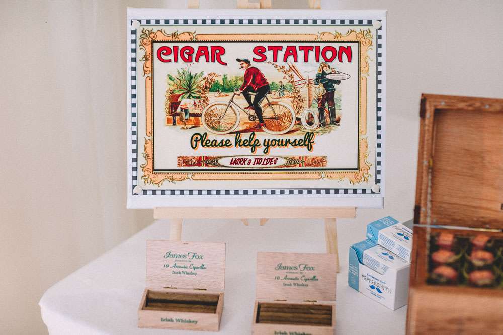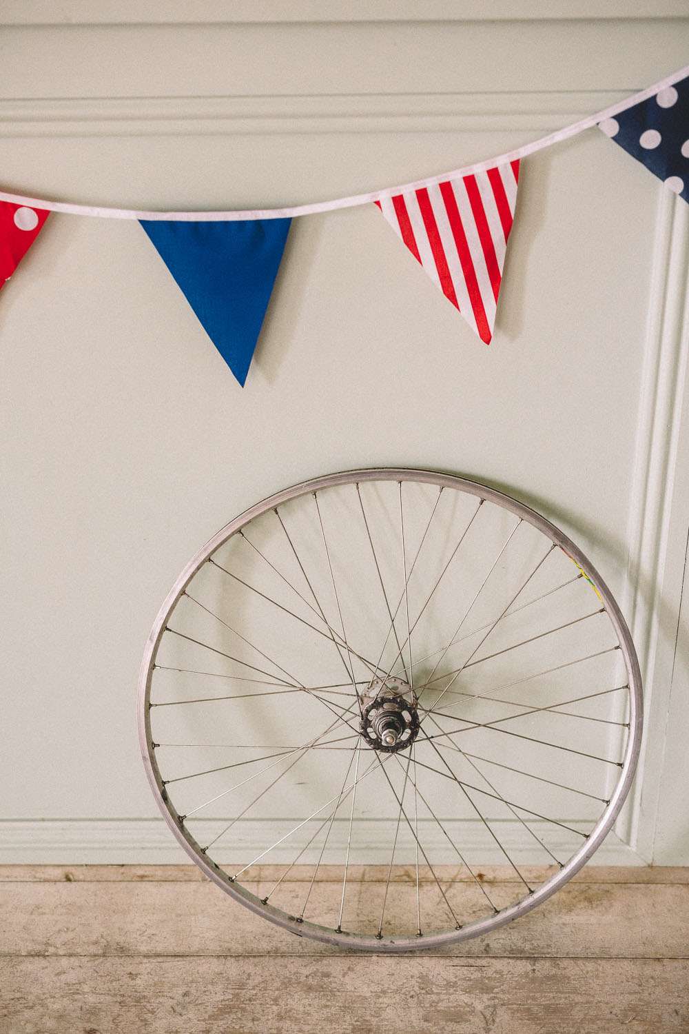 “We really drew on our friends and families talent too”, she continued. “My dad made a giant fairground piece with a cycling theme (the ones you put your faces in for photos). He also designed the wedding favours which were lovely bottles of whiskey. My bridesmaids Lauren and Ursula are both designers so helped with any sewing and any creative things.”