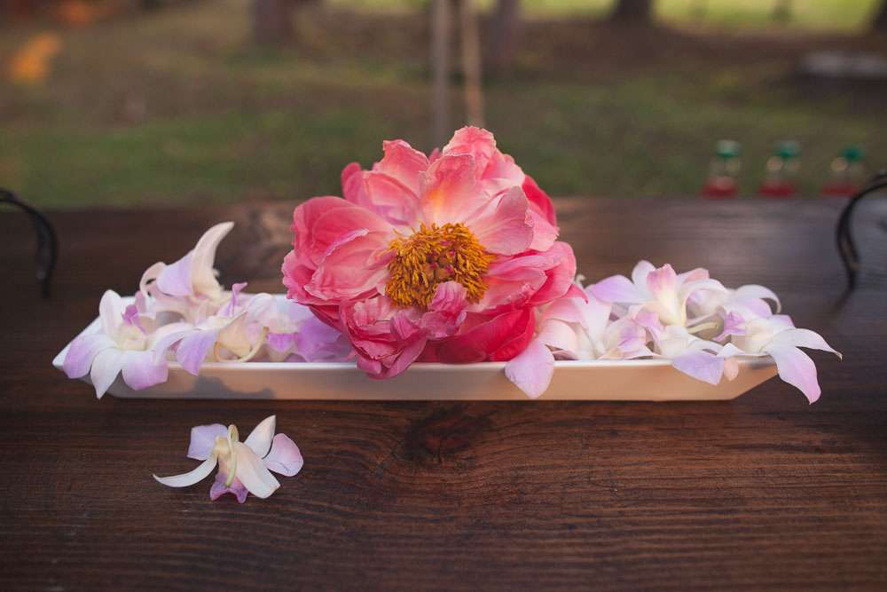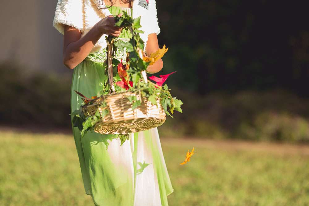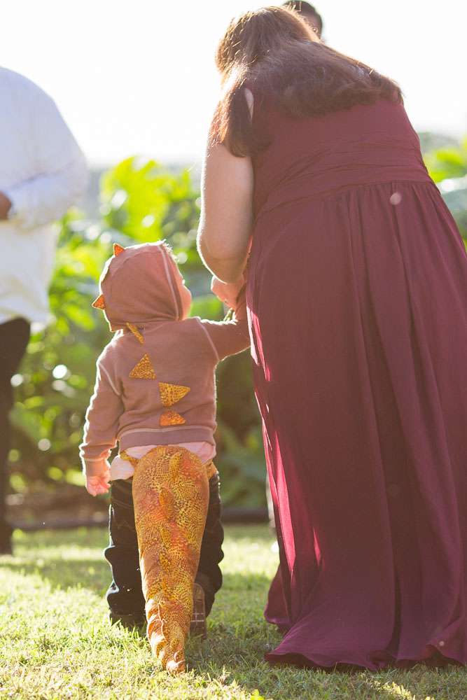 The DIY projects included the centrepieces and favours. “All of our centrepieces were wax-coated autumn leaves, twigs and both fresh and dried flowers. The mason jars were a last minute change. They were supposed to be displayed in real pumpkins however we bought them two weeks before the wedding and they didn’t last. I waxed them every day, gave them bleach baths every two days; they were basically my little pumpkin babies. But, with the humidity here on Maui, they didn’t make it. The mason jars were a great save, though.”