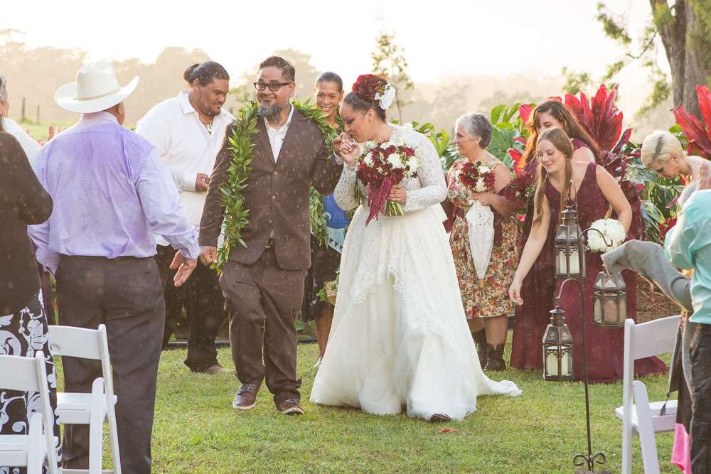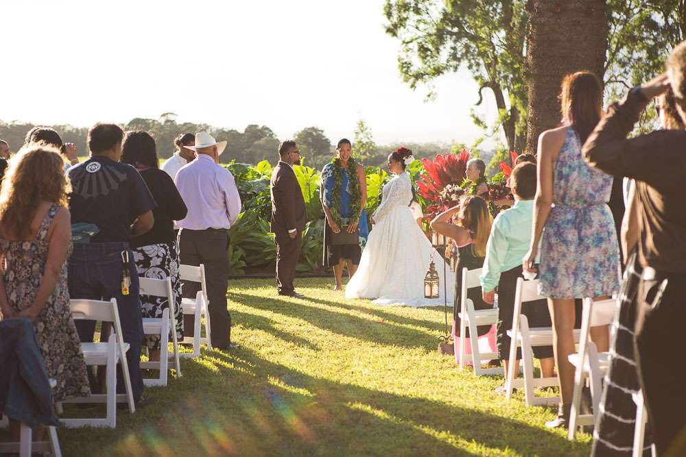 Jessica and Kanoa’s Hawaiian wedding took place on Maui. Their ceremony was conducted in both Hawaiian and English by the groom’s cousin. The bride was inspired by lots of vintage elements.
