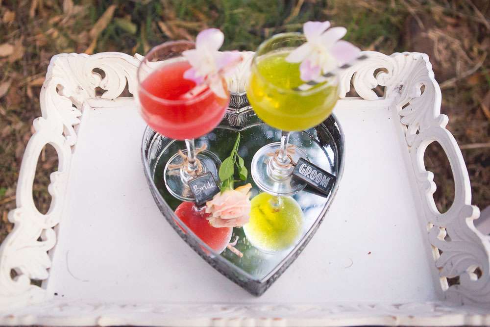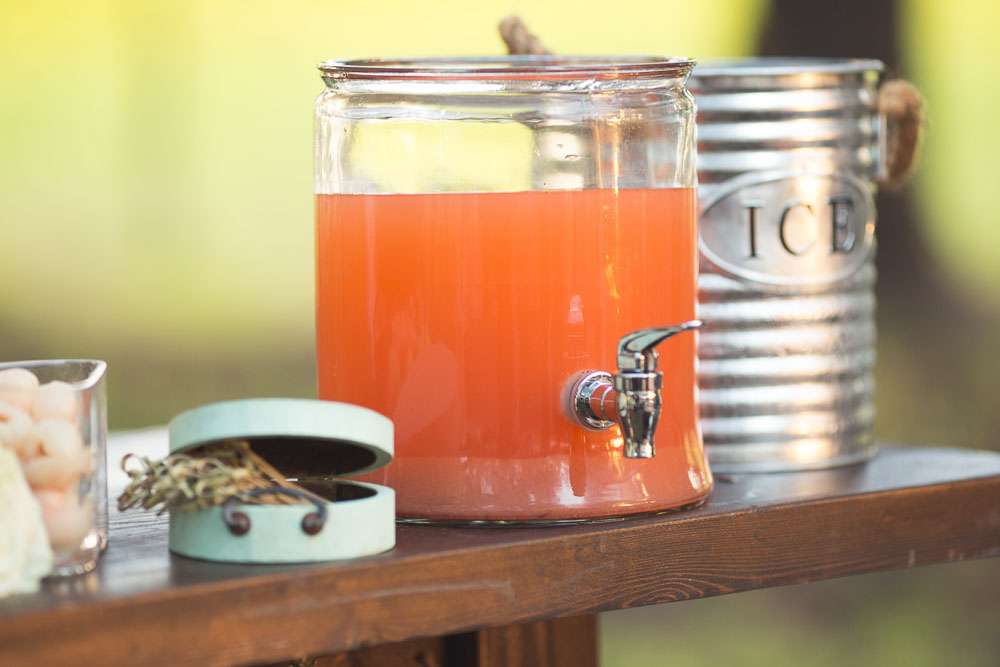 “The place names and favours for our guests were candles that my mom, sisters and I made. Being a bartender, I have unlimited access to empty liquor bottles that just get thrown out at the end of the night. I learned how to score and cut the bottles and we used them as candle holders. Our favours were loose-leaf tea bags inside a little burlap bag with a personalised stamp of our faces on it.”