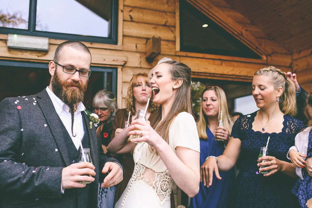 “The first thing I bought before deciding on a venue, dress, or anything else, was the cake topper from Melabo Wed on Etsy as we both loved it”, said Emily. “This was the starting point for our inspiration! I think we surprised ourselves with how many traditional elements we included in our wedding day – however there were things which we knew we didn’t want. I didn’t have an engagement ring, we didn’t want a first dance, to throw the bouquet, or full 3-piece suits for the men. Andrew had always told his mum that he would get married wearing trainers, which he did!”