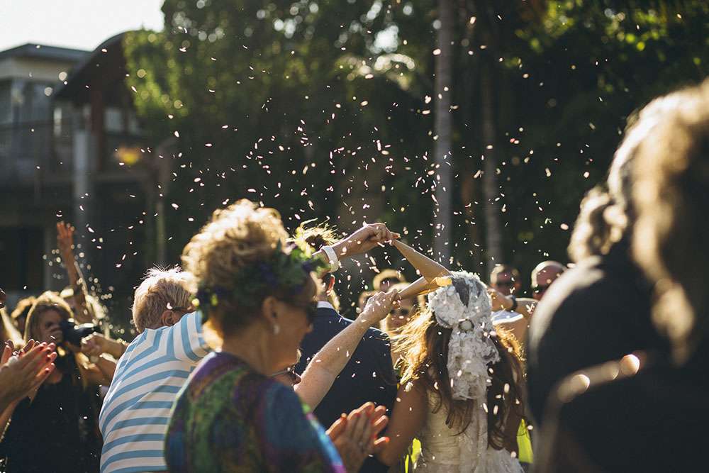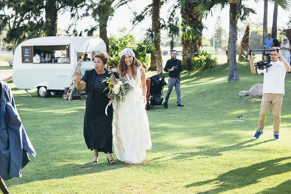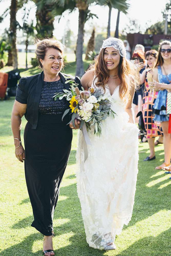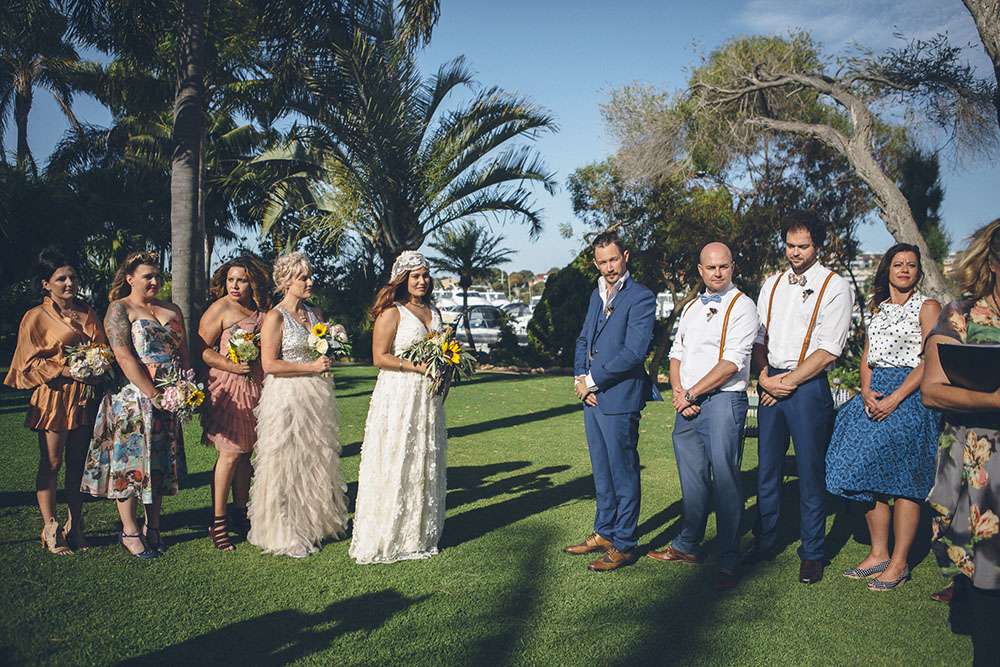 The ceremony was held outside, by the river in North Fremantle in a beautiful private quiet little garden “After walking down the aisle with my Mum she stayed at the front with the bridal party and did an acknowledgement to country before we started”, Devina continued. “As I’m Indigenous Australian we always acknowledge Indigenous elders past and present from that particular area as a custom and for respect. Interesting, as we were near the water it was really windy right up until that point and then after the acknowledgement the wind died right down and was perfect for the ceremony.”