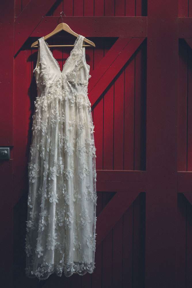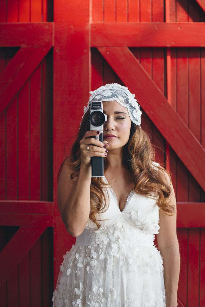 Devina wore a custom made dress by Kristie Slater with Miu Miu shoes. “I won my dress in a competition that my bridesmaid entered me in! I was so lucky to have won a custom made dress which I collaborated on with the designer. My headpiece was left over lace which I turned into a headpiece. It was originally supposed to be a cape, but it didn’t work out in the end. My maid of honour turned up on the wedding day with a handful of antique brooches and sewed one on the back where it was all gathered.”