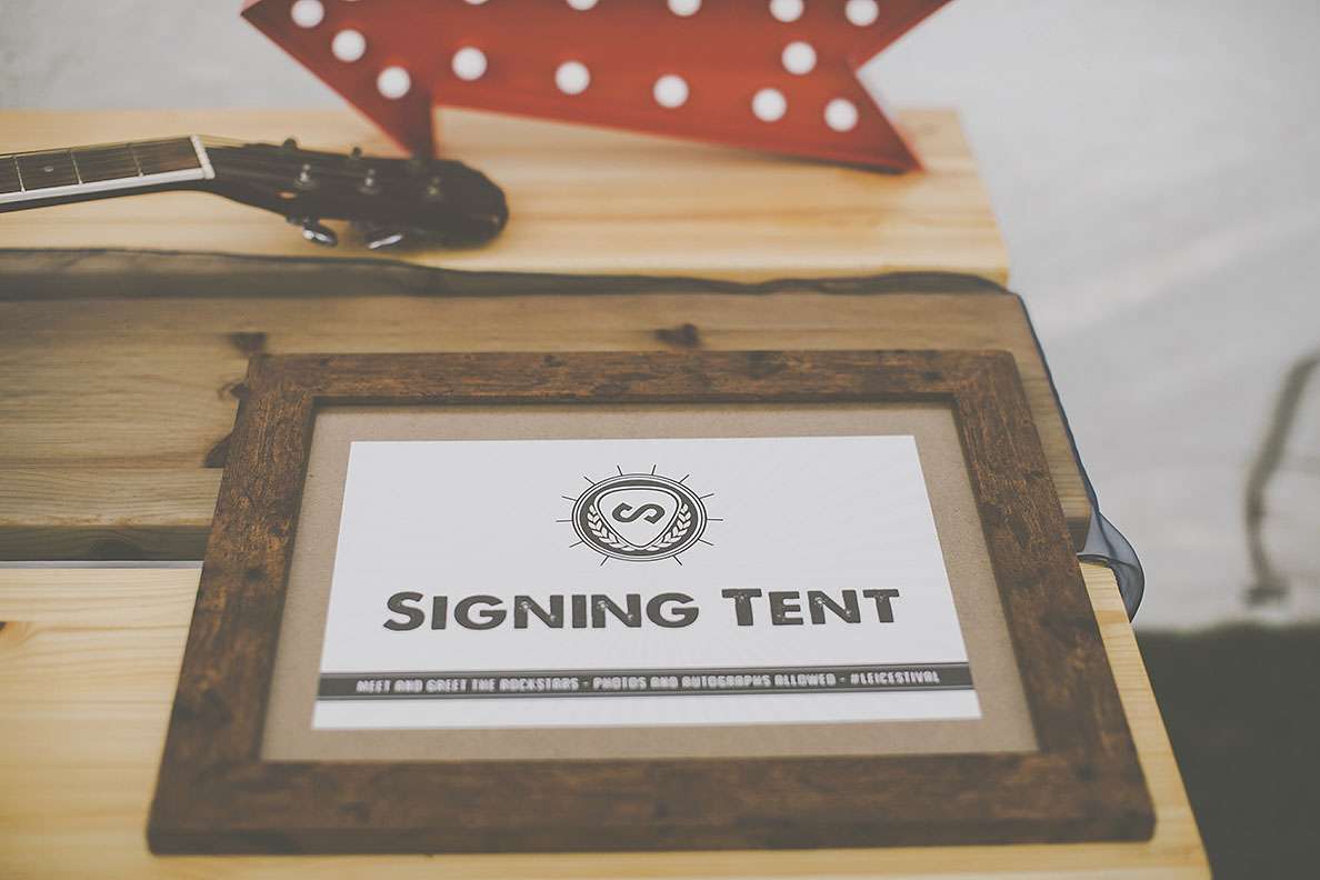 “In keeping with the festival theme, the ‘main stage’ was a tipi and we had other marquee tents hosting the photo booth, merchandise desk and an acoustic guitar to hand sign. We had two of our favourite caterers to prepare and serve hand made, fresh food from of food stalls in the field. We even encouraged people to put up tents and stay over to camp that night to prolong the day/night. We really didn’t want it to end!”
