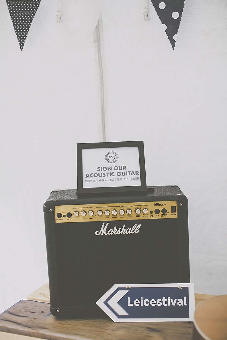 “The inspiration for Leicestival was our mutual love of live music!”, began the bride. “Not only did we meet through music (Dan was in a band and I was a big fan!) but we also met a lot of our closest friends through music too. We love the atmosphere of music festivals; how relaxed you feel when you’re in a field paired with great music, food, drink and surrounded by the best company. That’s what we wanted, and we wanted everyone else to feel that way.”