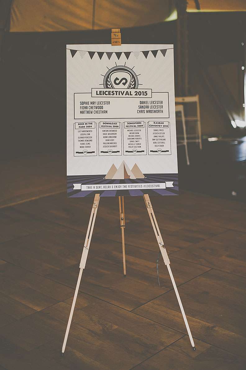 Dan and Sophie’s wedding was dubbed ‘Leicestival’ (based on their surname). They wanted the wedding to reflect a live music vibe as they both love music, festivals in particular.