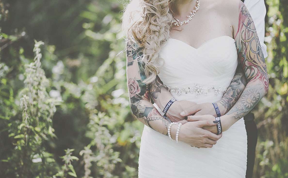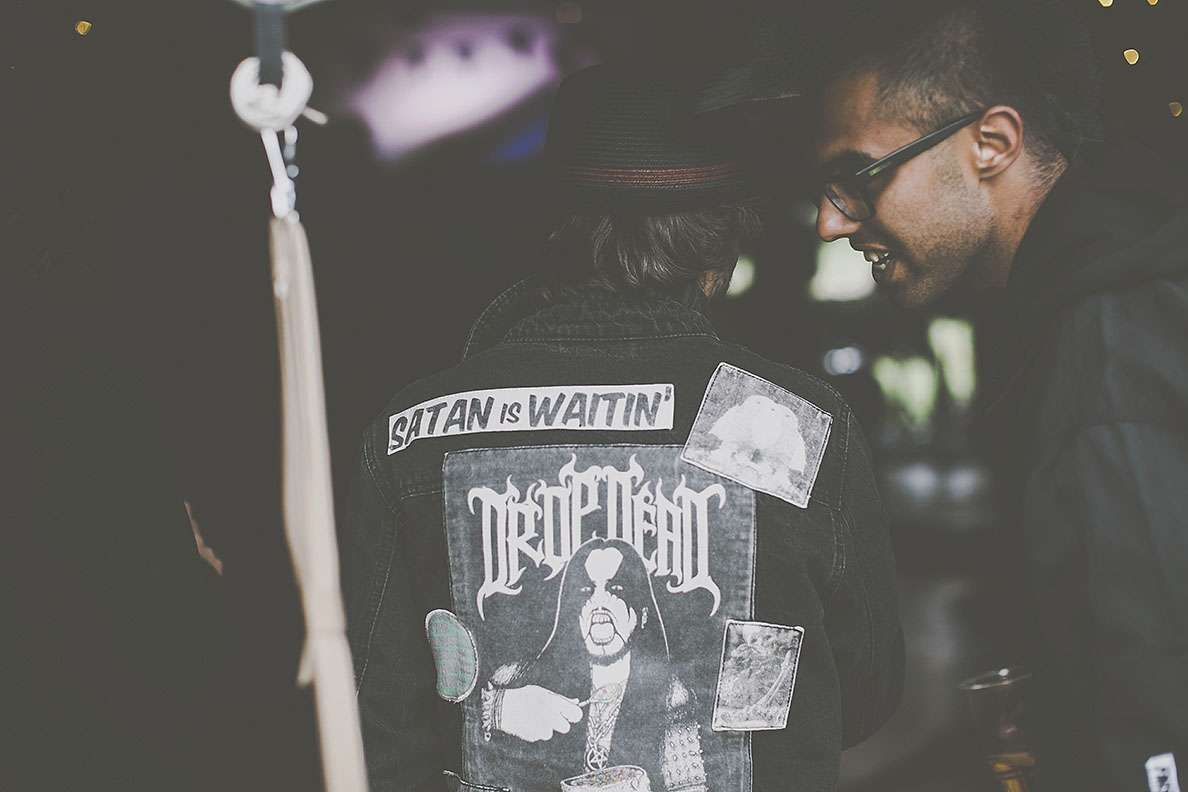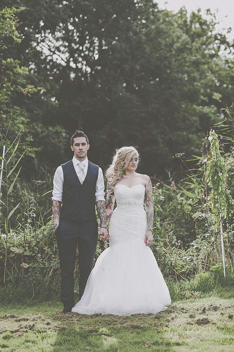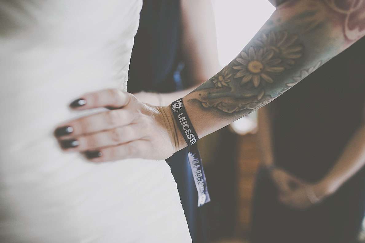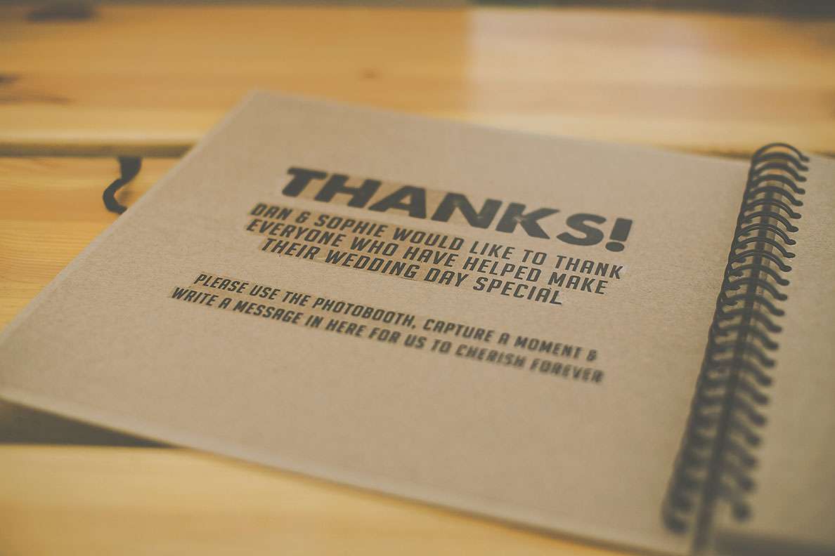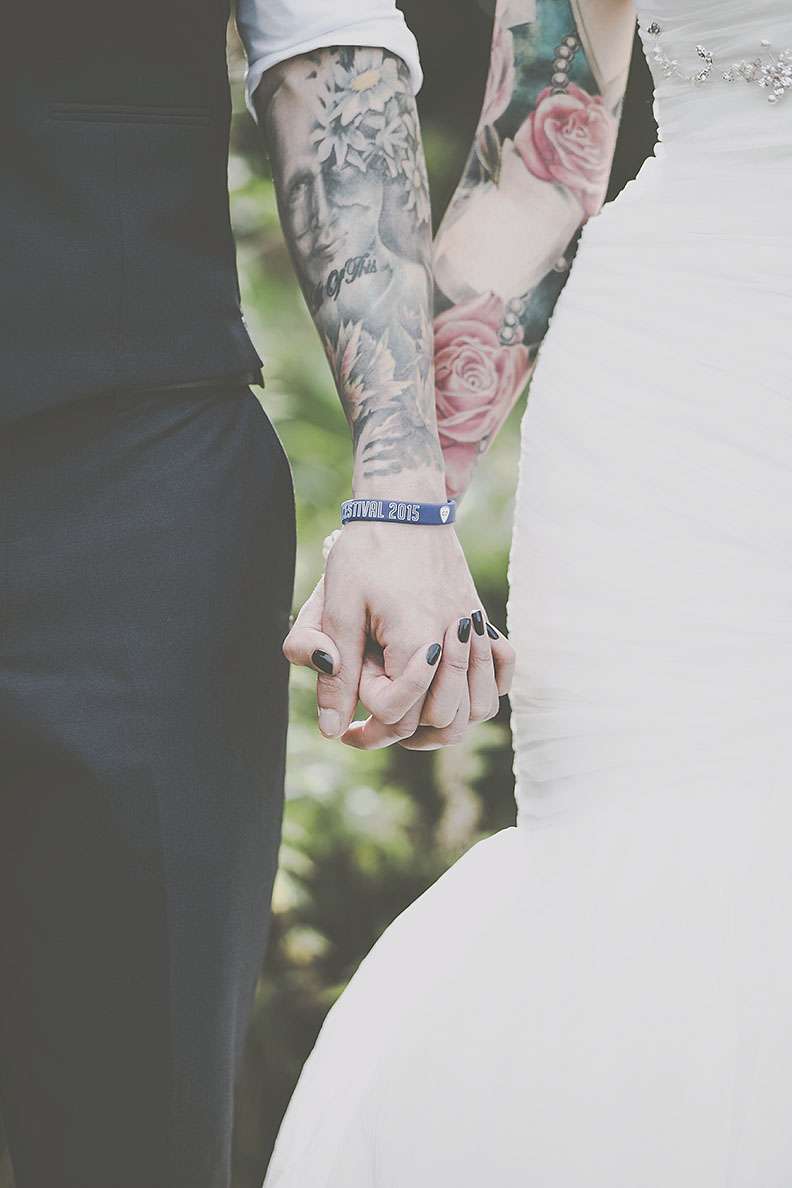 They really wanted an informal wedding that all their guests would enjoy. “I went to town on branding everythingl. I’m a digital designer so I designed everything I possibly could. I was definitely more excited about creating wristbands and invites rather than my wedding dress! I designed tonnes of merchandise; plectrums, badges, wristbands, t-shirts, lanyards, stickers etc. and put up ‘Merch Desk’ for all the guests to collect and keep memorabilia from our special day!”