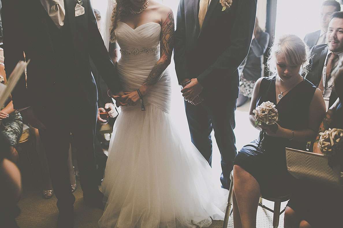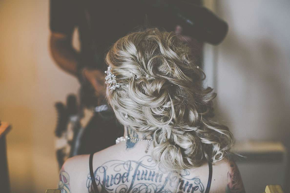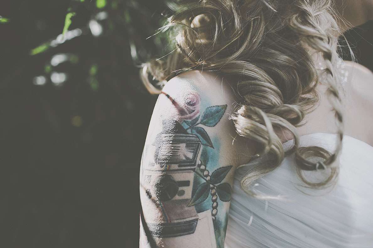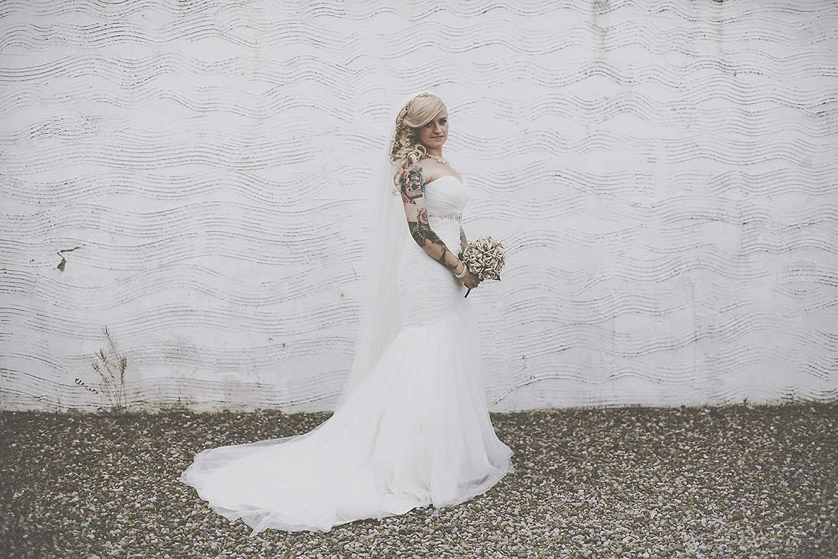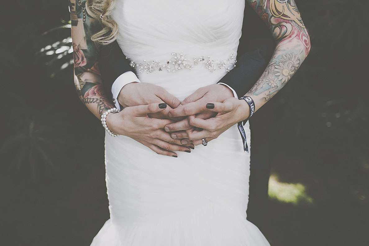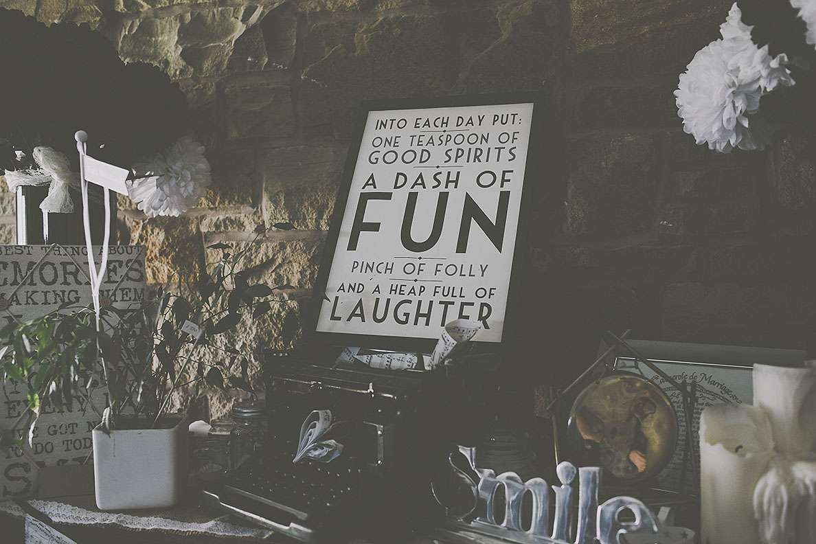 They really wanted an informal wedding that all their guests would enjoy. “I went to town on branding everythingl. I’m a digital designer so I designed everything I possibly could. I was definitely more excited about creating wristbands and invites rather than my wedding dress! I designed tonnes of merchandise; plectrums, badges, wristbands, t-shirts, lanyards, stickers etc. and put up ‘Merch Desk’ for all the guests to collect and keep memorabilia from our special day!”