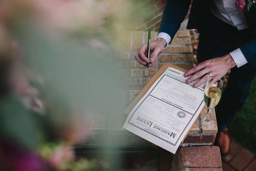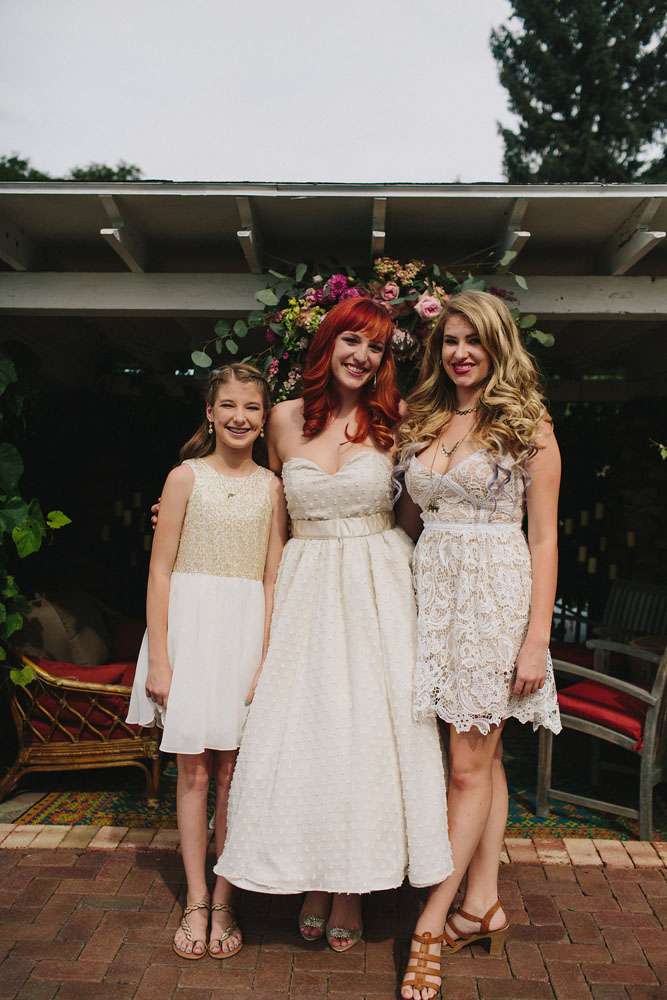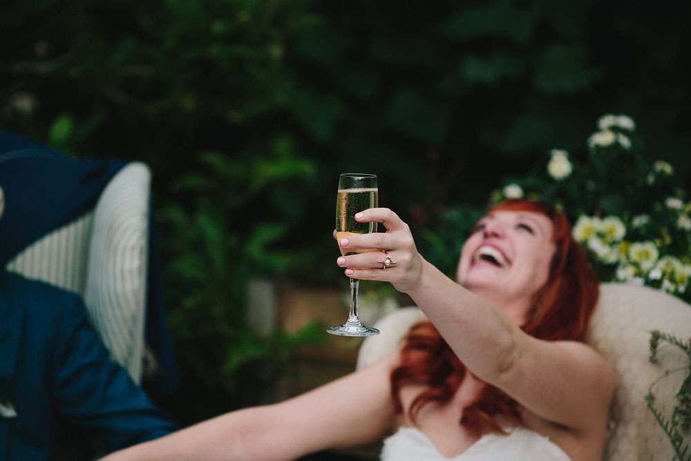 Their ceremony was in the back garden and it rained! “It started raining the exact moment that I stepped foot outside the house for my procession and it stopped right as the ceremony ended”, she laughed. They say that’s good luck, though! Since neither of us are religious, we wanted the ceremony to be focused on personal stories, readings from literature and poetry that have meaning to us, and friends.”