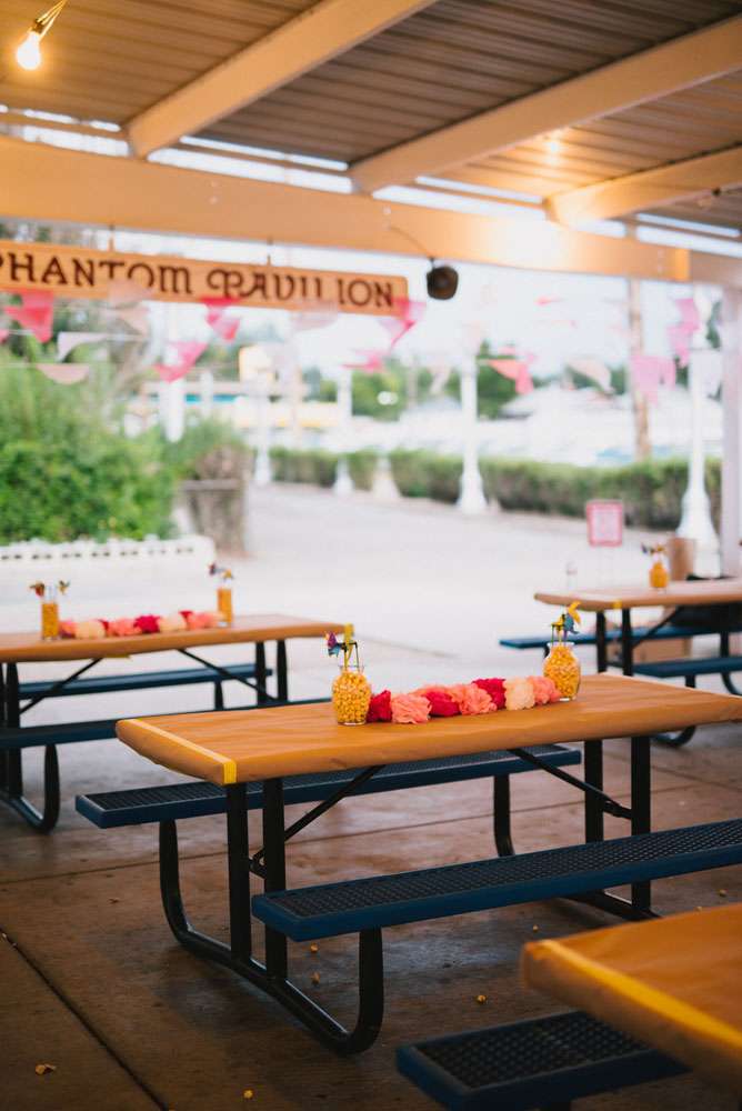 The couple really wanted the whole evening to feel like a casual summer party. “The reception in particular was one thing that we felt we could break away from the traditional dinner and dancing by offering our guests a unique experience at the amusement park. It’s one of Denver’s historical gems.”