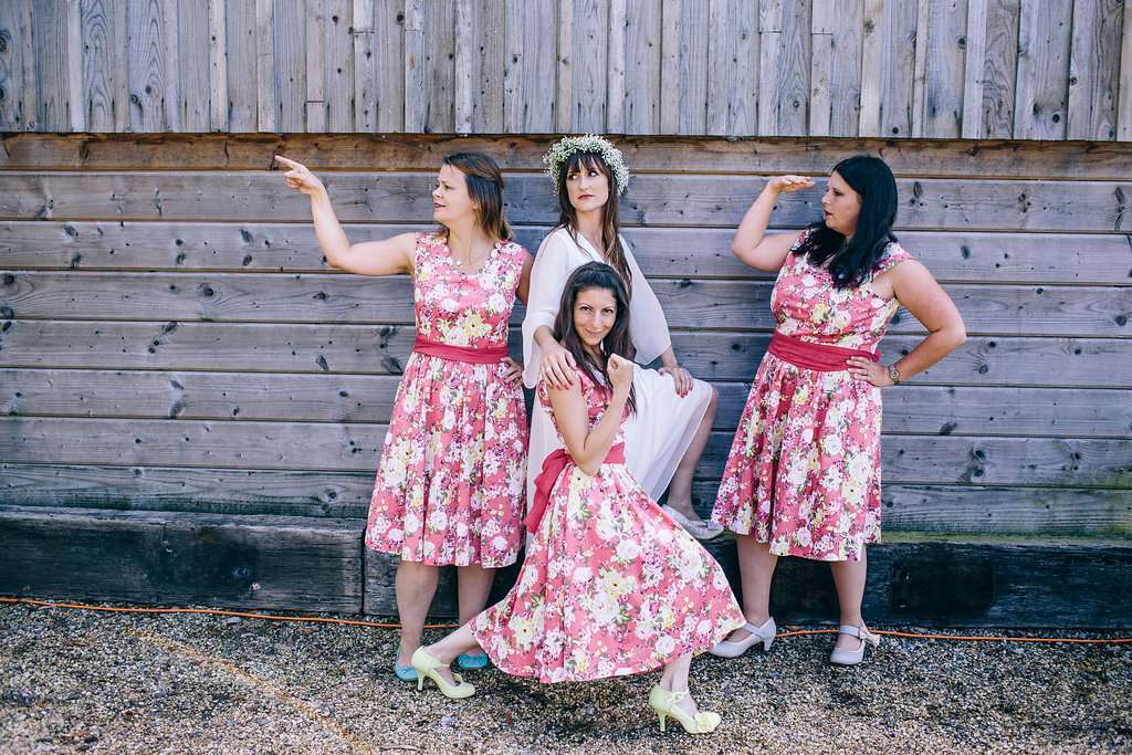 The bride wore a dress from Monsoon and her bridesmaids were in ones from Lindybop. “I had three adult bridesmaids. I bought another adult dress the same and had it re-made to fit my 7 year old niece, Lola. The seamstress that made her dress even made her a matching bag out of the spare material!”