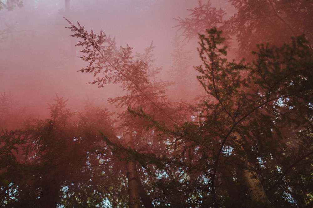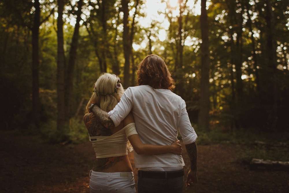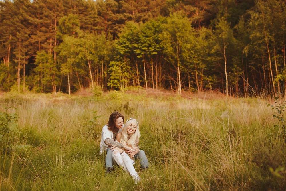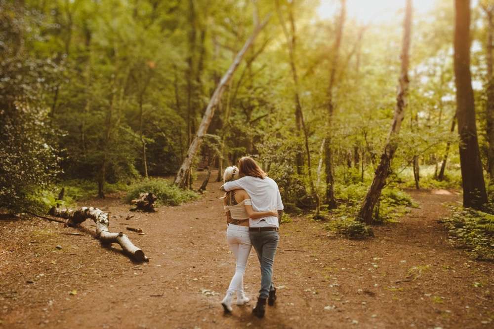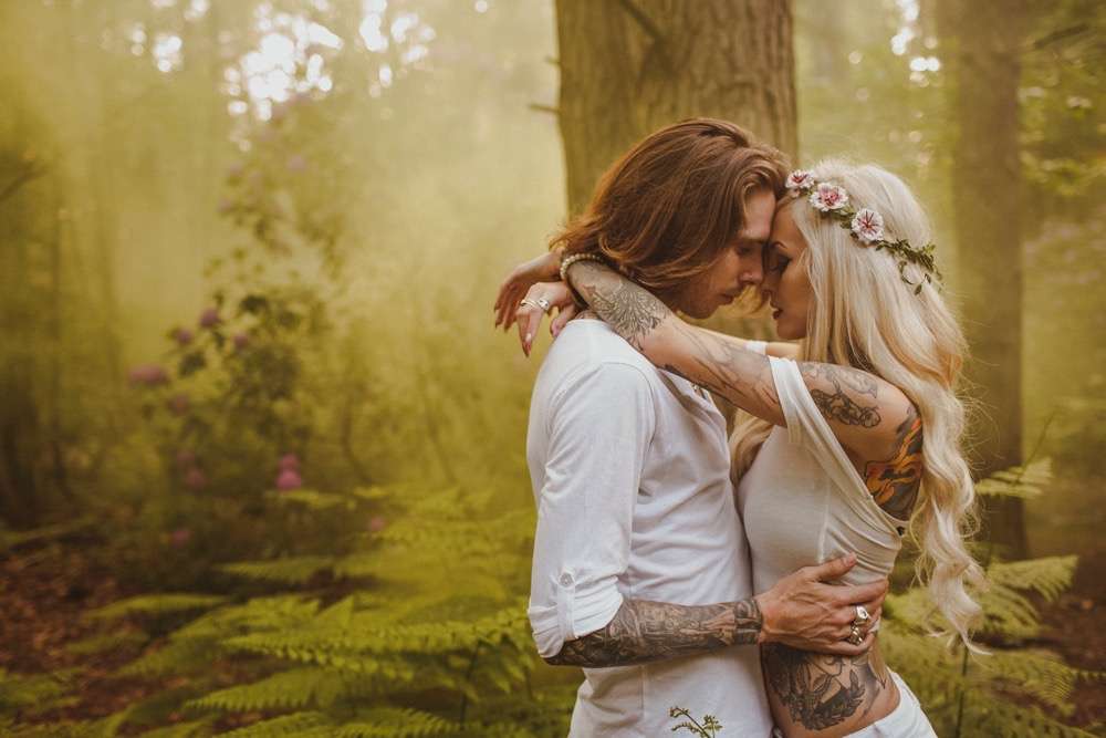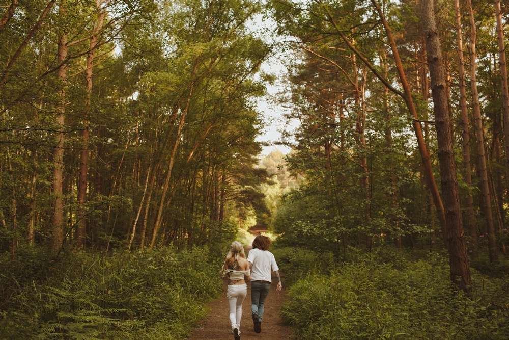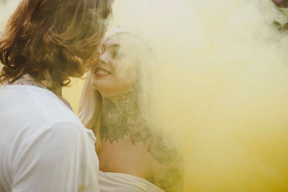 “Our engagement shoot took place at Oxshott Woods, Surrey”, said Jody. “It had a woodland fairytale theme. We wanted our photos to have a unique quality about them and to represent something classic but also with an edge (like us!) We wanted to add something that made the natural backdrop more magical with the coloured smokebombs.”