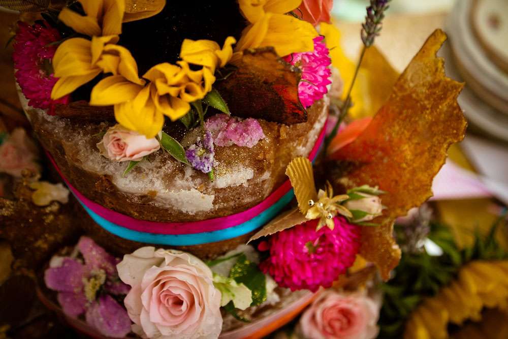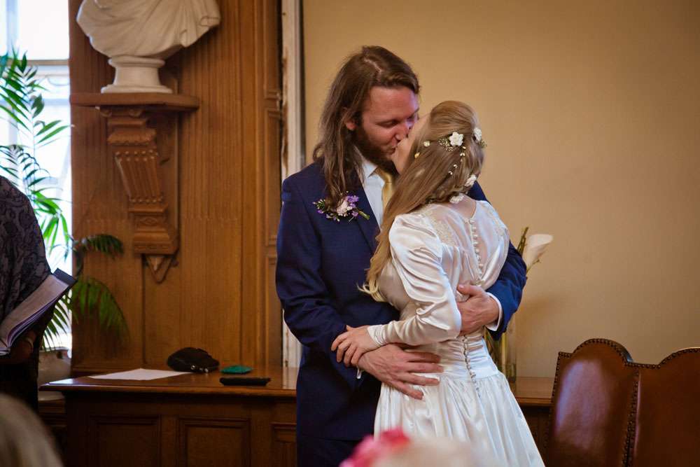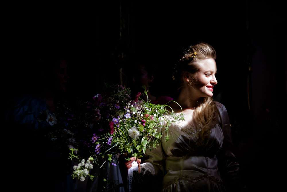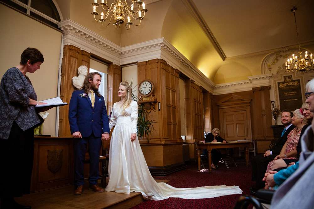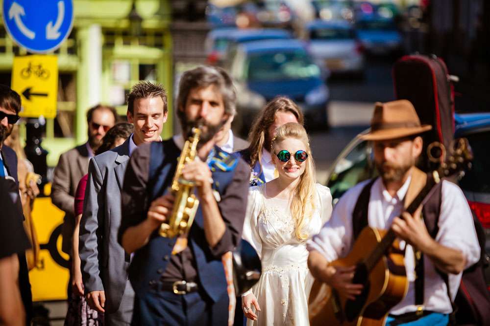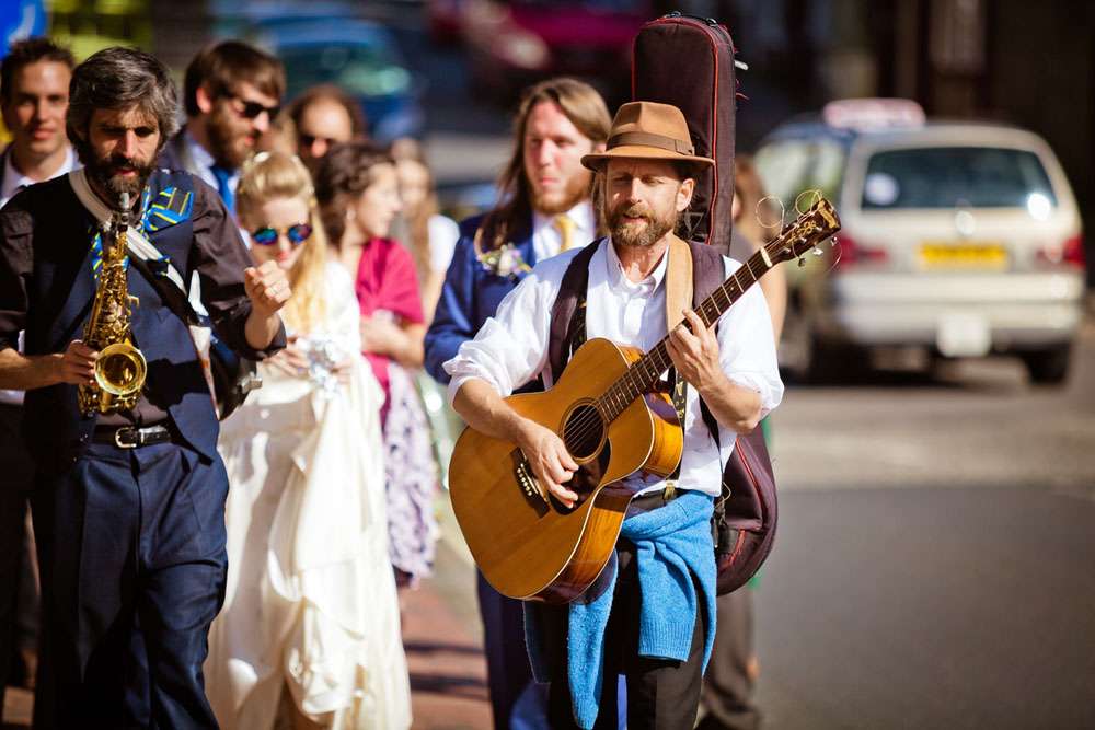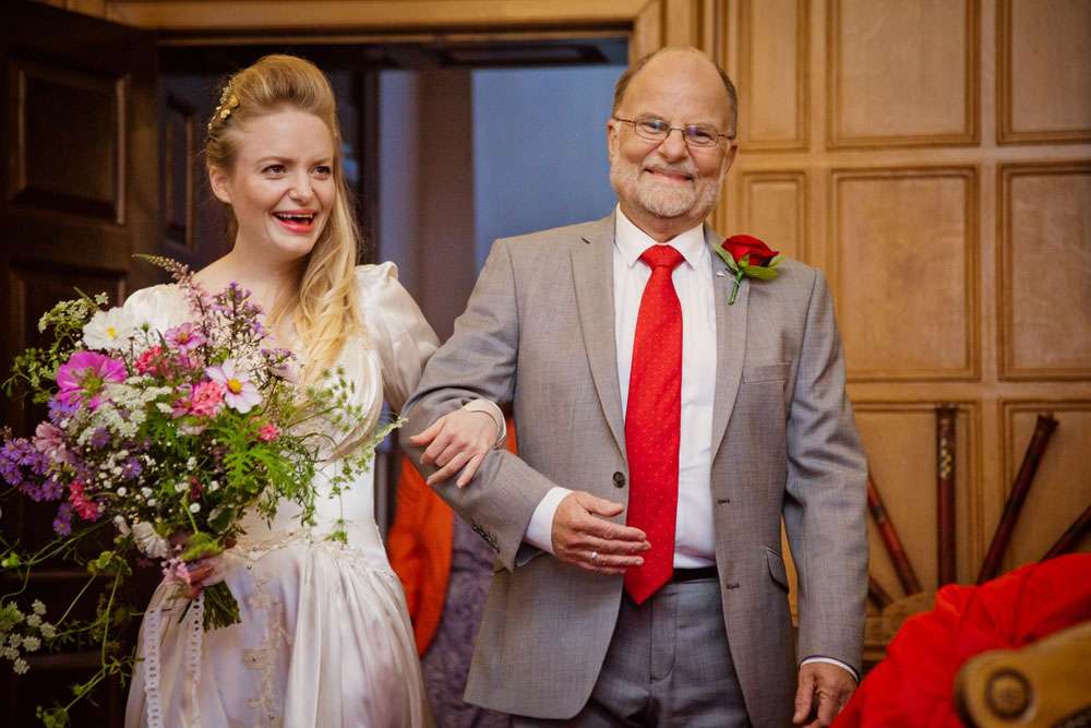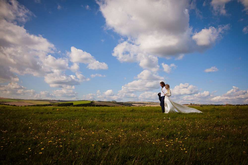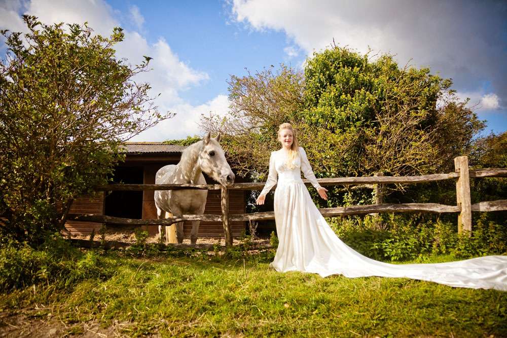 The bride wore a vintage dress that she bought at Secret Garden Party. “I found my dress a Lady Jane’s at Secret Garden Party. My mum was actually already halfway through mocking up my dress (I am a fourth generation seamstress and I had always thought she would make it) but when I tried on this dress I knew it was the one. It was exactly the same as the dress I’d drawn up for my mum to make! I thought I’ll just try it on for fun but it fitted so well and the ladies in the shop were almost crying! My bridesmaids were helping me run my shop next door and came running in, also crying! I knew it was the one. I went and stood out on the grass in front of our shops and people started to stop to congratulate me! One girl came up and held my face and didn’t say anything, just nodded her head at me, her boyfriend had to take her away (I think she was a bit squiffy – ha ha) So I sent my mum a picture and she messaged back in seconds saying ‘BUY IT!!’ I didn’t wait, I just went in and paid cash… it was a dream!”
