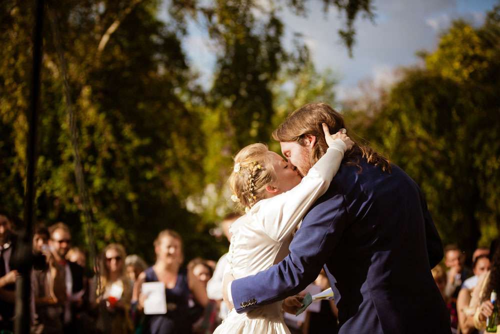 Rebekah and Tom’s September wedding was held in their own back garden. They didn’t set a budget but tried to save money where they could. They were inspired by the festivals they both love to go to.