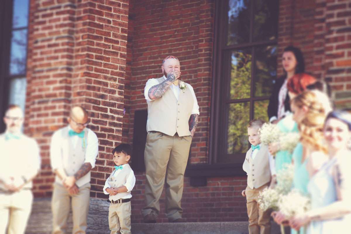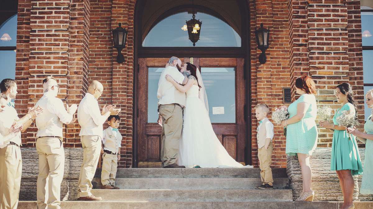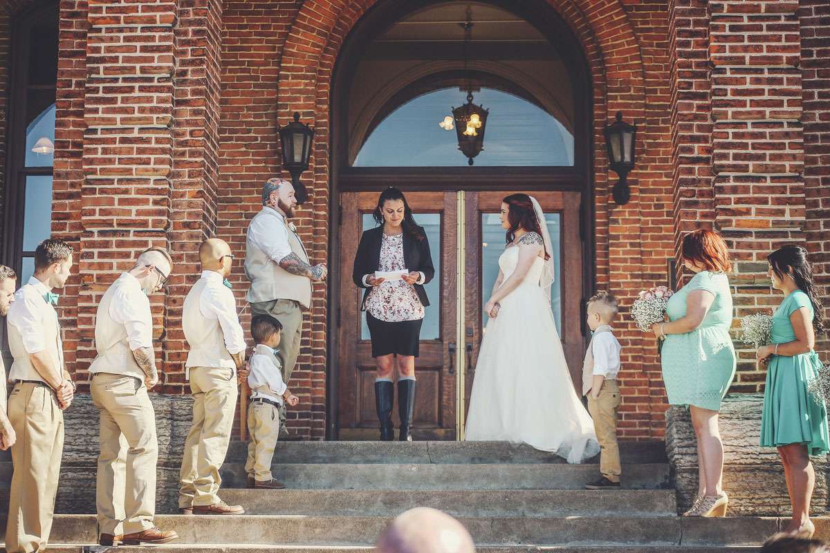 The best bit of the day for this pair was the ceremony. “I was really nervous since it was an April wedding in Minnesota and sometimes it can still feel like winter here at that time of year! Luckily it turned out to be a sunny day! The ceremony was on the front steps of the courthouse and we could not have asked for a more perfect day to get married. Seeing my husband for the first time dressed up and seeing all my friends watching us get married was an amazing moment.”