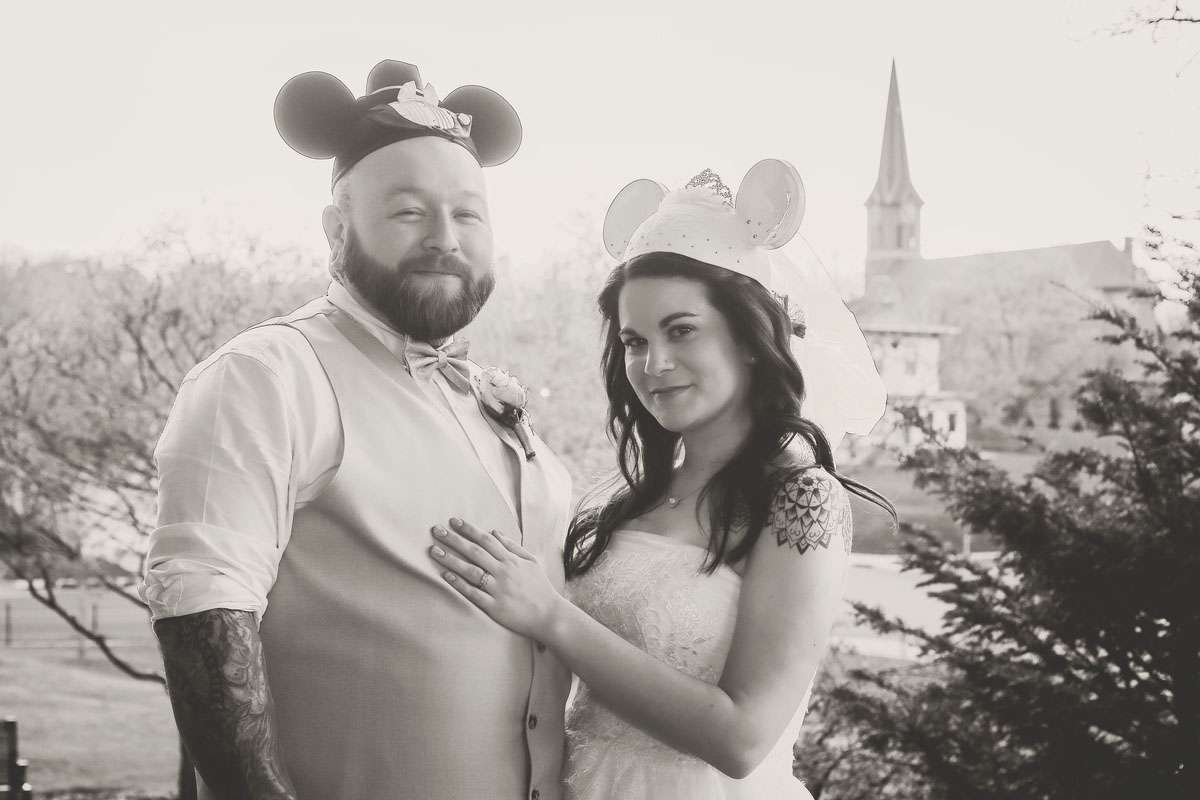 Lovers of all things Disney, Sarah and Jerrerd knew they had to have a Disney themed wedding. “We got to Disneyland and Disney World together every year and the movie Up is our favourite”, said the bride, “hence the mailbox and the adventure badges for our pins at the wedding. We also both have Disney tattoos and our two pups are named Meeko and Tug after some of our favourite characters.”
