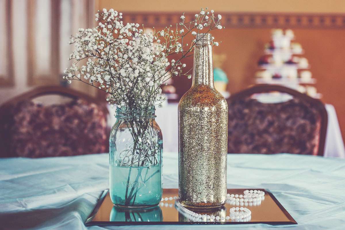 “Our theme, other than Disney, was shades of turquoise and gold. We wanted to keep it simple and very clean. Most people won’t notice all the details or worry if you didn’t fold/ cut/ colour something perfectly. We just wanted to have fun! In saying that I did make our bouquets and I also glittered wine bottles and turquoise tinted mason jars for the centrepieces.”