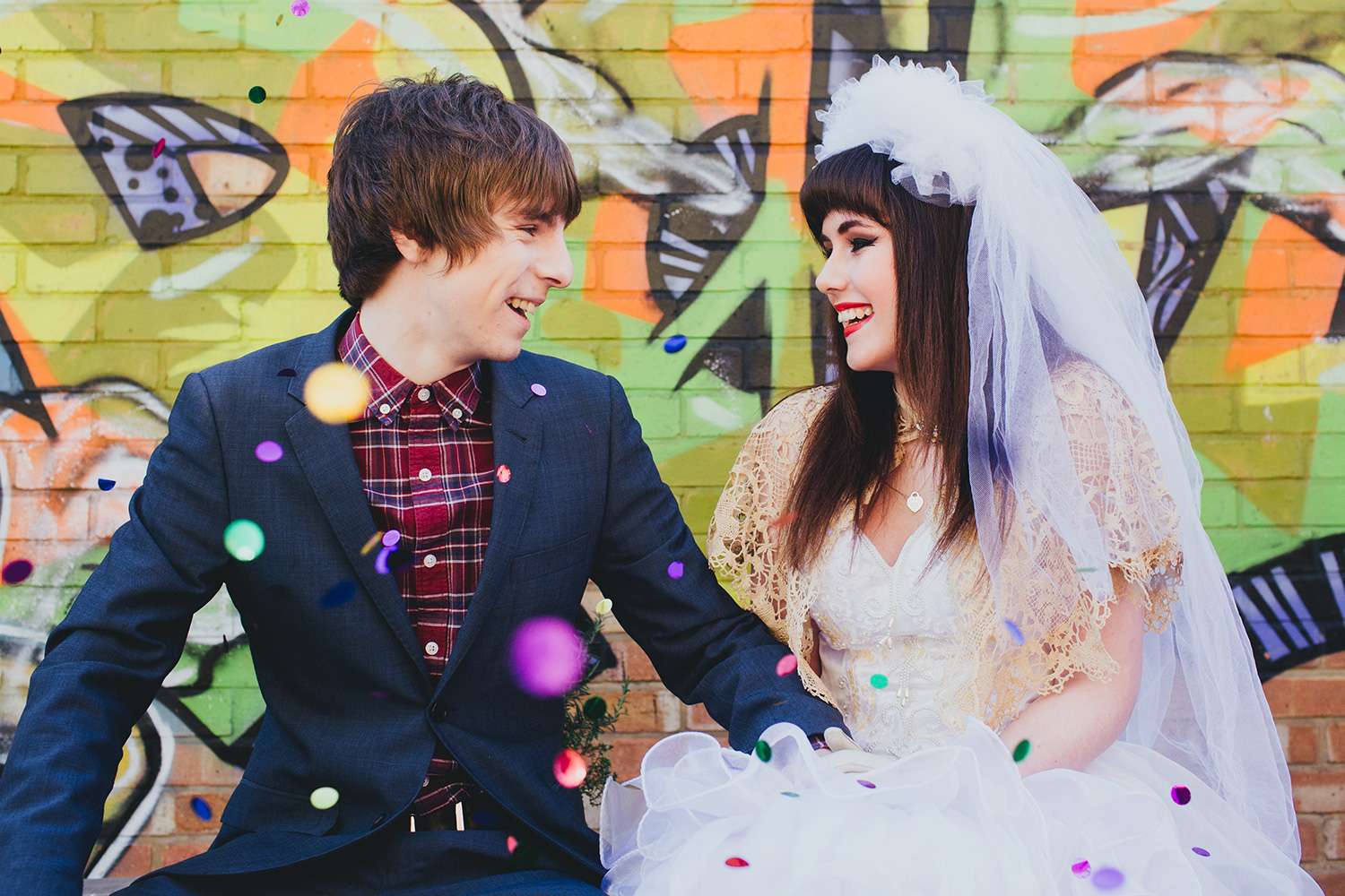 “These photos show that you can have the wedding of your dreams, something that truly reflects your personality without being thrown into debt for years to come!”, said Lauren, who worked on the shoot. “So as well as being cool and pretty, I wanted this shoot to be honest, real and raw. This is why it features real mods, original skinheads and goths. They are all real life friends and real couples! They all understand what the alternative way of life is about.”