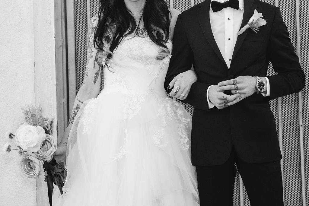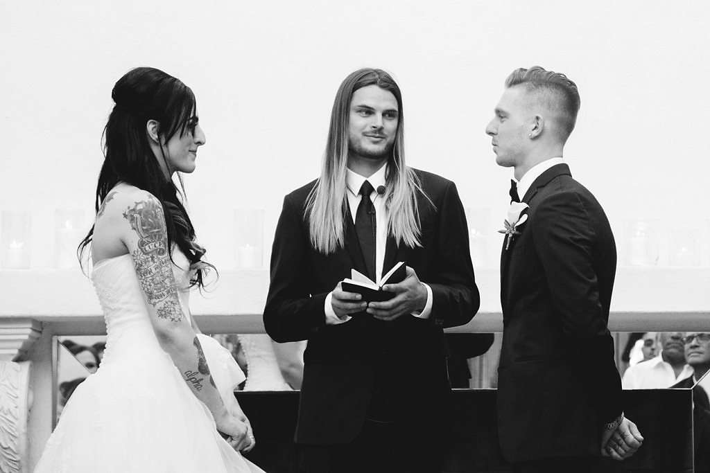 Joey and Emily’s wedding was pure Rock n Roll! “Our theme was Rock n Roll chic”, said the bride. “We wanted it to be as ‘us’ as possible – still a wedding, but anything but basic as far as details were concerned. Our photography was definitely inspired by Kim and Kanye’s wedding photos – we wanted high contrast, mostly black and white pictures.”