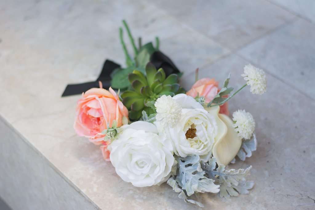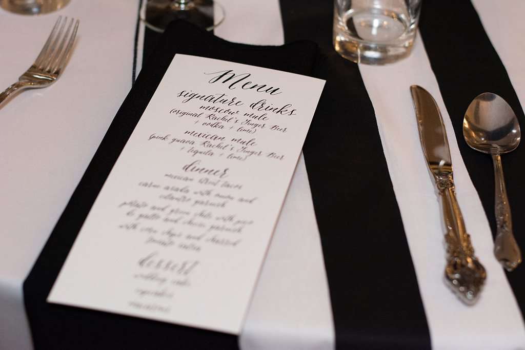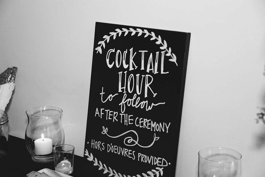 ” We wrote our own ceremony script together and then asked a close friend to serve as officiant. This made the ceremony feel more intimate and genuinely emotional for us. The best moment for both of us was when I walked down the aisle and we first saw each other. All of the stress from earlier in the day instantly disappeared and everything really hit us in the sense that it was really happening – it was perfect! We were also so in love with the way the ceremony decor turned out, with all of the mismatched candles on the fireplace mantle and the black rose petals with greenery lining the aisles.”