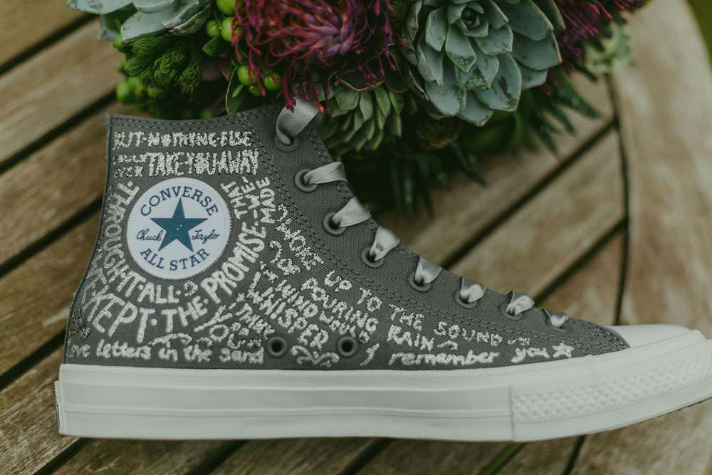 “We wanted music to be a huge part of our day, and for it to be as chilled out as possible”, said the bride. “We opted to ditch the traditional three course meal and instead served fish n chips and burgers and fries. My dress was inspired by the Guns n Roses November Rain video and we had a friend’s cover band play in the evening. We also spent weeks working on our wedding playlist.”