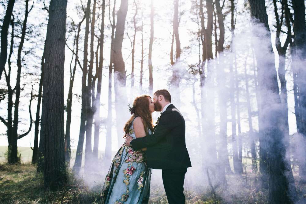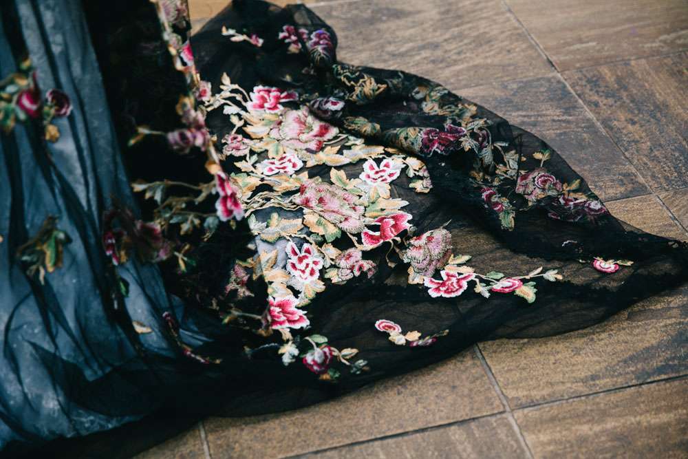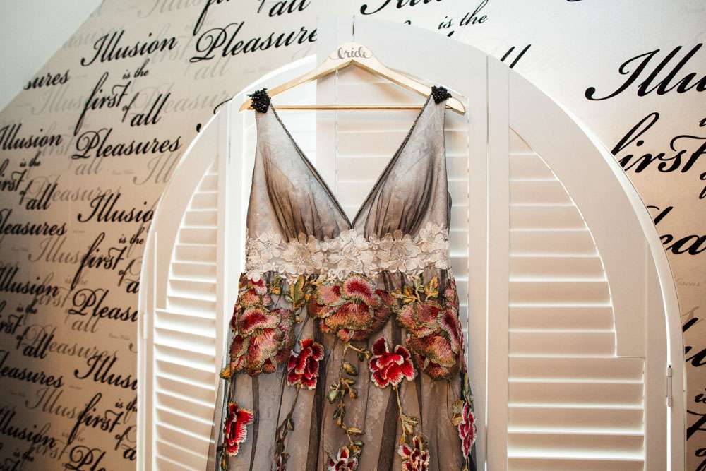 “I’m a bit of an art history nerd and have always loved the Pre-Raphaelites so I would say that our general aesthetic was inspired by them”, said the bride. “The romantic revamping of classical and medieval imagery in a more modern, playful way, with intense colours and moody, dramatic scenes. Originally I had picked out a very classic, ivory ballgown for my dress but when I saw the dress I ended up with, I felt like it picked me.”