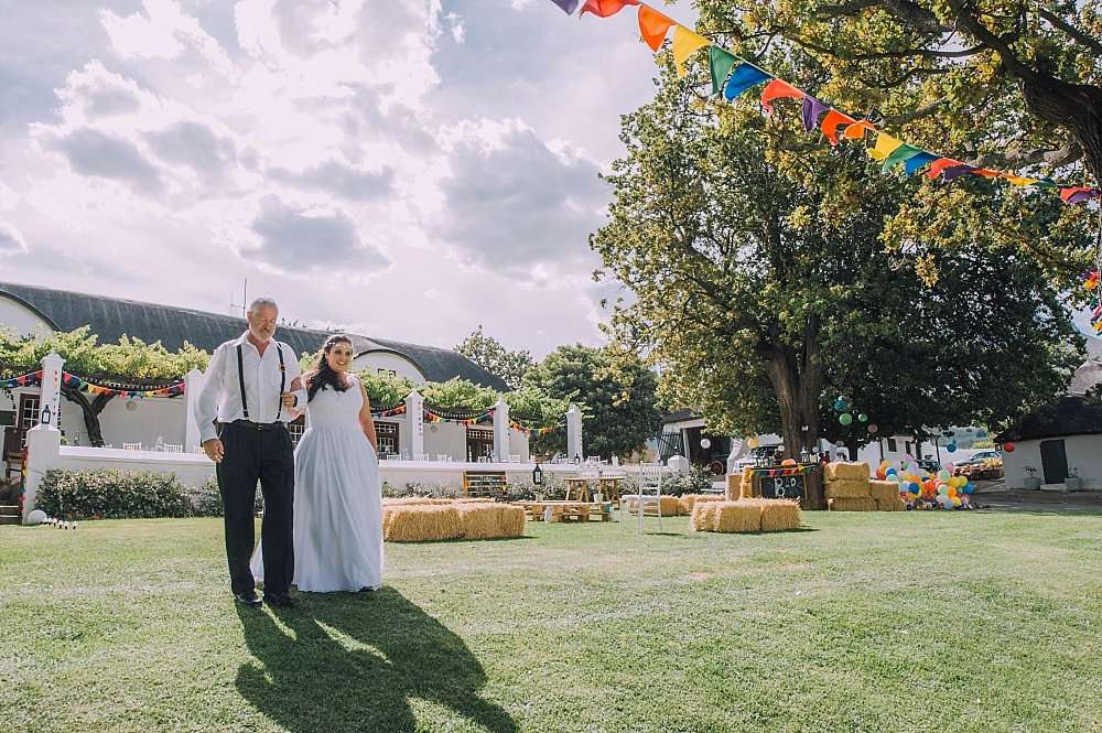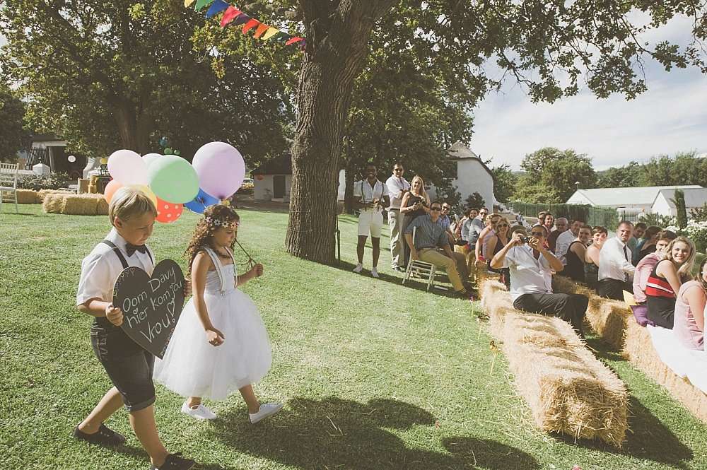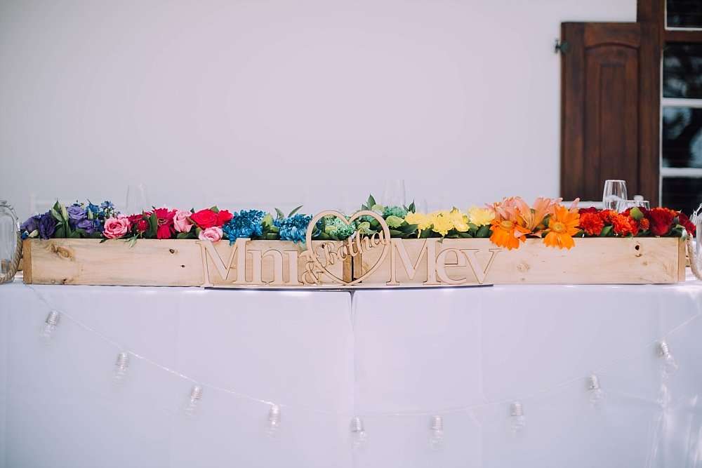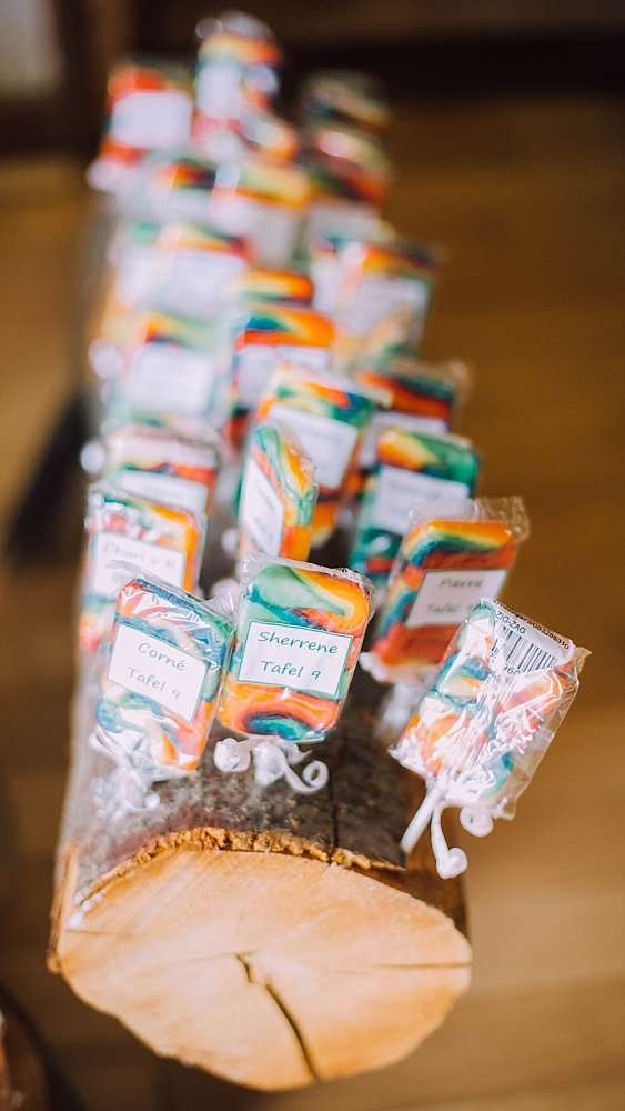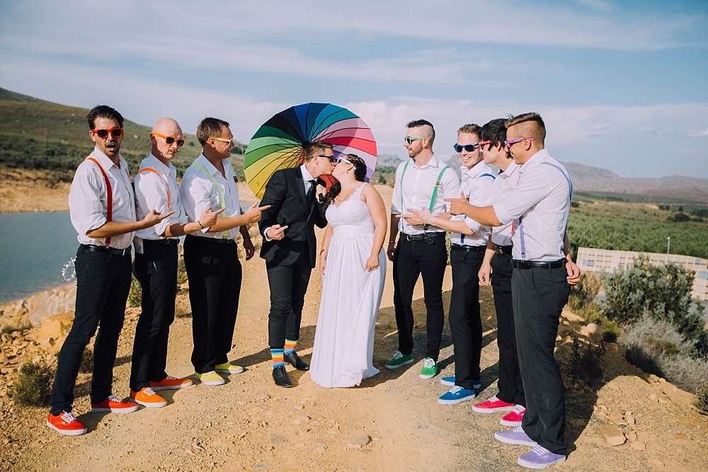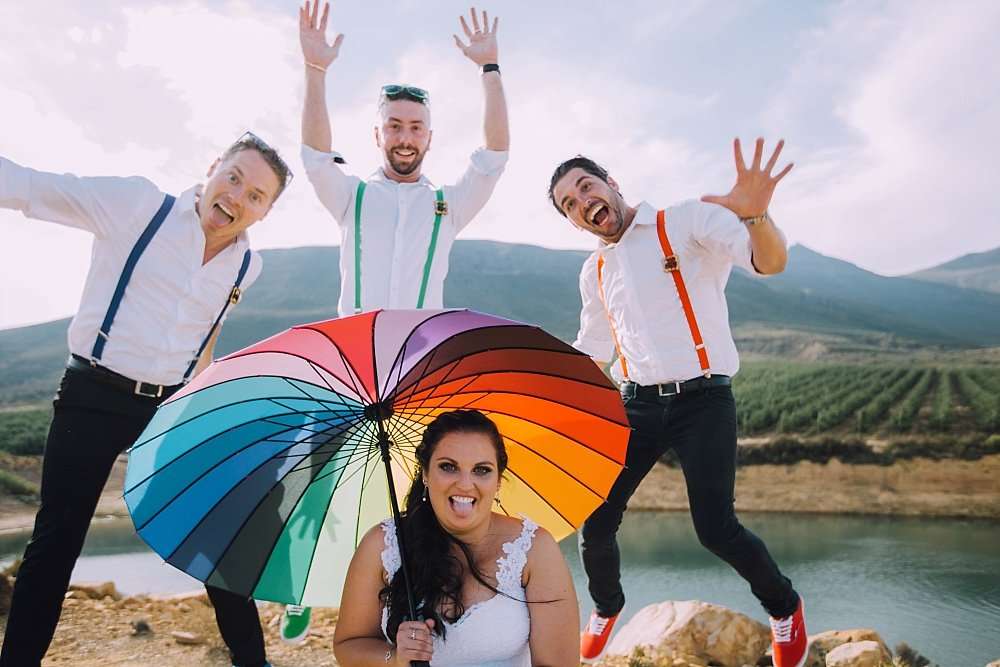David and Nicoline’s South African wedding had a very obvious theme – rainbows! They wanted their day to be colourful, cheerful and fun. “We wanted the day to be special, a day that our guests would always remember and talk about”, the bride said. “We did a lot of things differently but one of the most obvious ones was that there were no girls in the bridal party – we had ‘bridesmates’ instead!”