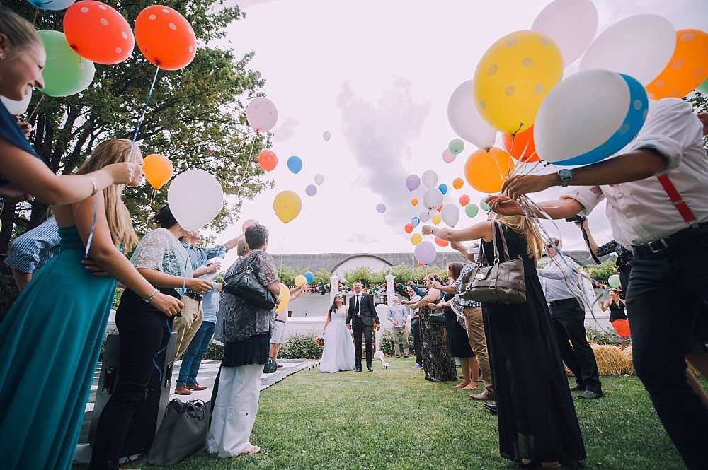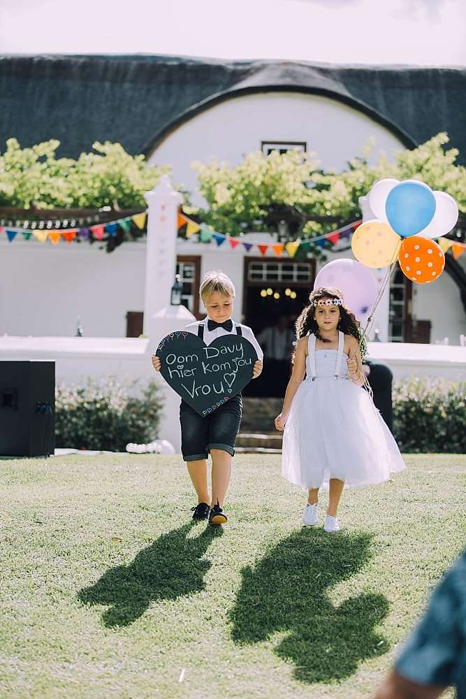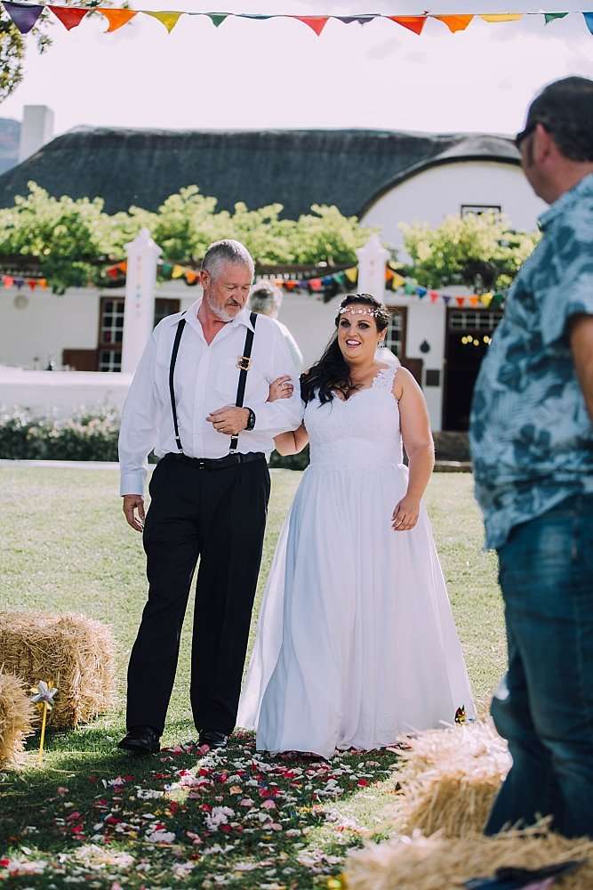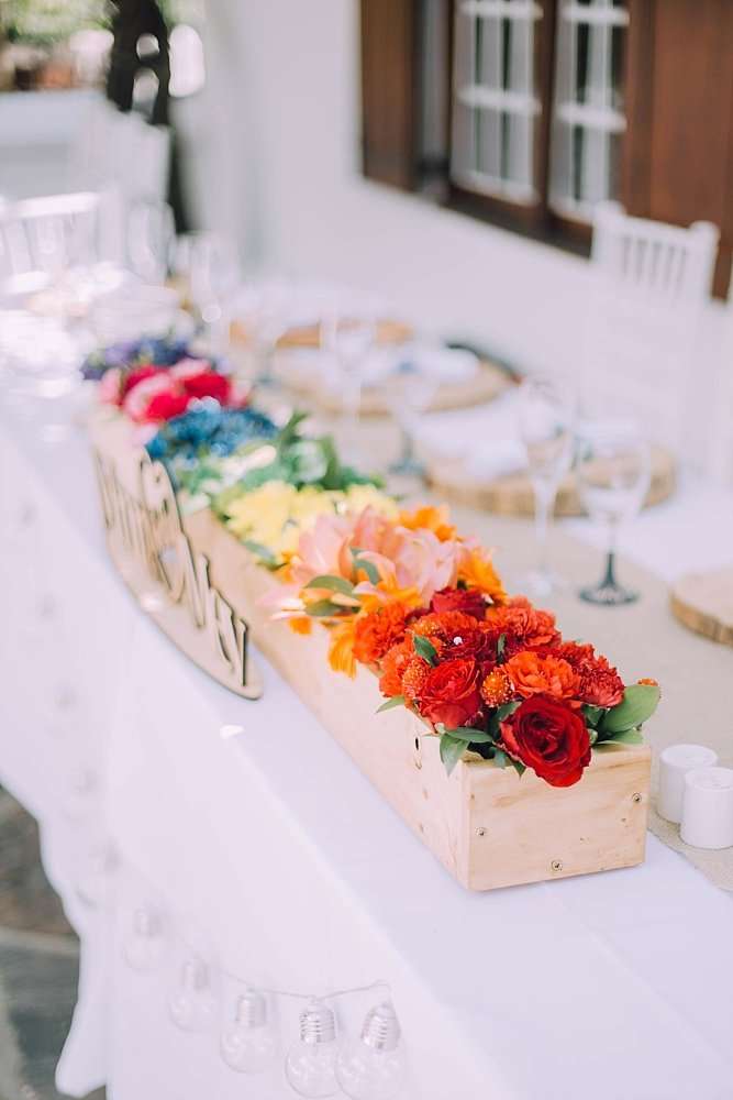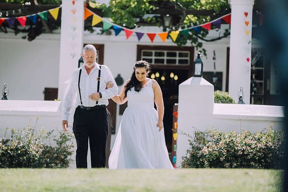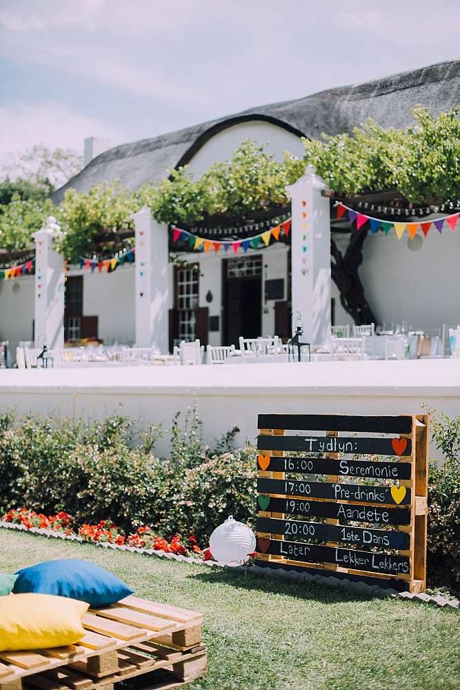 David and Nicoline’s South African wedding had a very obvious theme – rainbows! They wanted their day to be colourful, cheerful and fun. “We wanted the day to be special, a day that our guests would always remember and talk about”, the bride said. “We did a lot of things differently but one of the most obvious ones was that there were no girls in the bridal party – we had ‘bridesmates’ instead!”