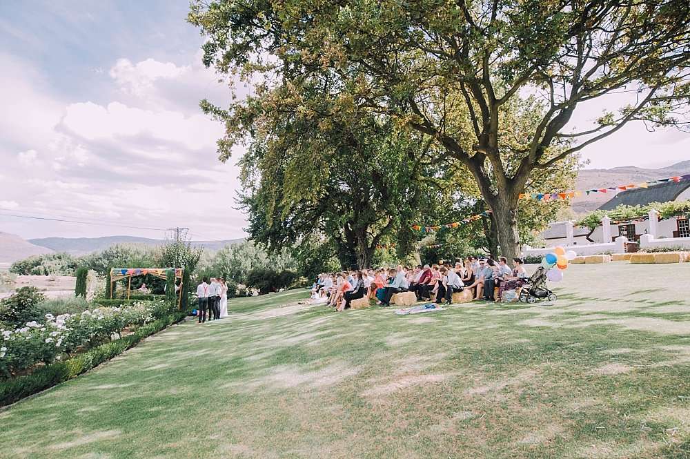 “The ceremony was very special, our guests were sitting on straw bales and on the grass,. It had a very casual vibe. The officiant gave a beautiful speech and afterwards we planted a tree.”
