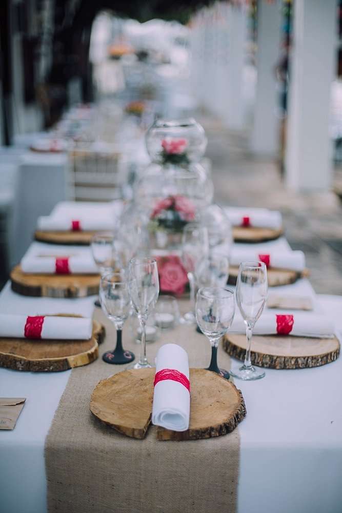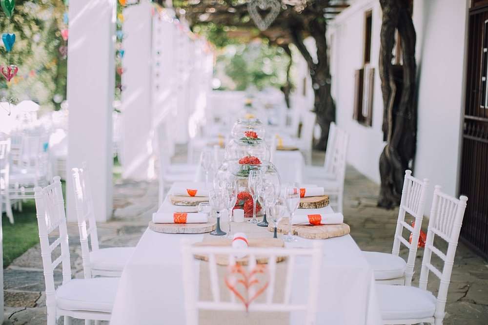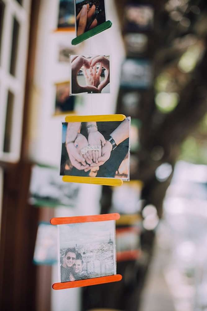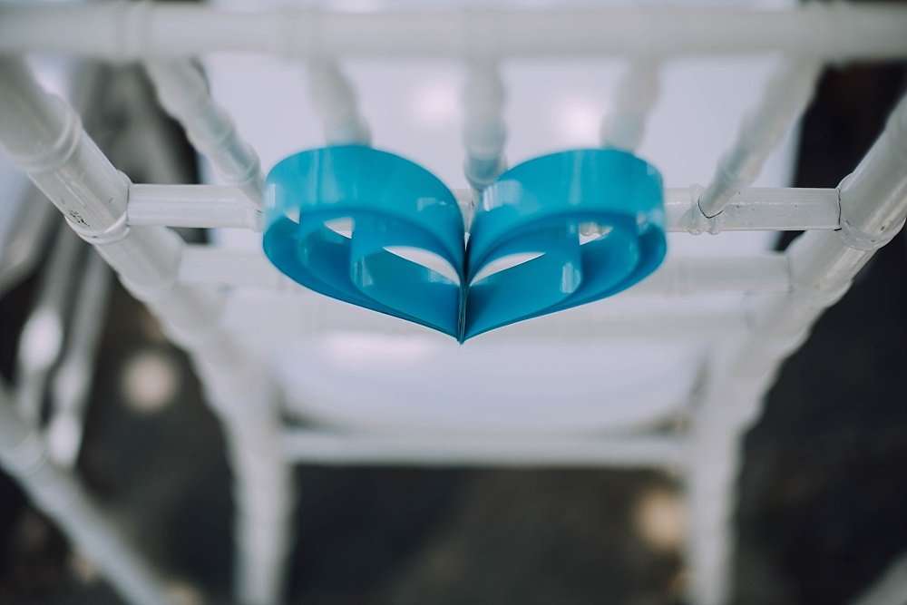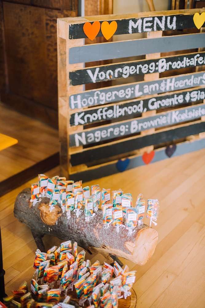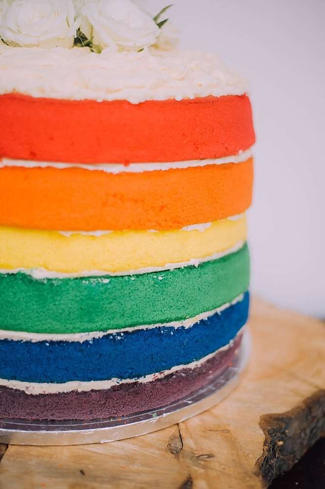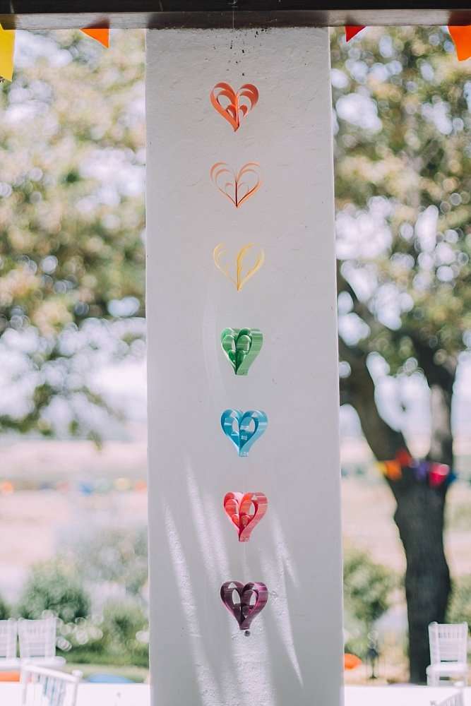 Most of the decor was homemade. “We made the the hearts, the bunting, the tableplan, and the thank you gifts which were cookies. My mum made the cake and a family friend did the flowers. We had every table as a different colour of the rainbow with different coloured flowers and napkin rings.”