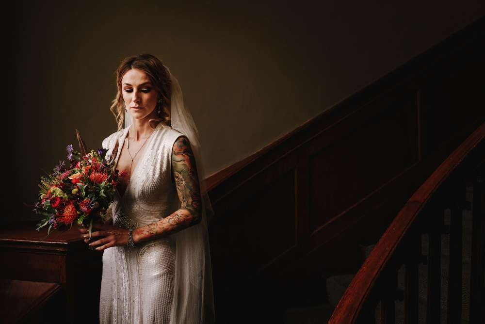 Ru and Matt’s wedding perfectly reflected them. The bride wore a striking Jenny Packham dress with messy, boho hair and they both had their tattoos proudly on display! Their epic cake played homage to their favourite 80s movie, Lost Boys, and they used lots of deep colours in the flowers and decor to show their love of all things Moroccan.