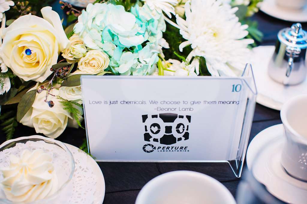 “We honestly couldn’t pick just one thing as our theme, so we chose all the nerdy things we enjoyed and made sure they had their place”, said the bride. “We were inspired by our daily lives, and our desire to always find things fun or happy.”