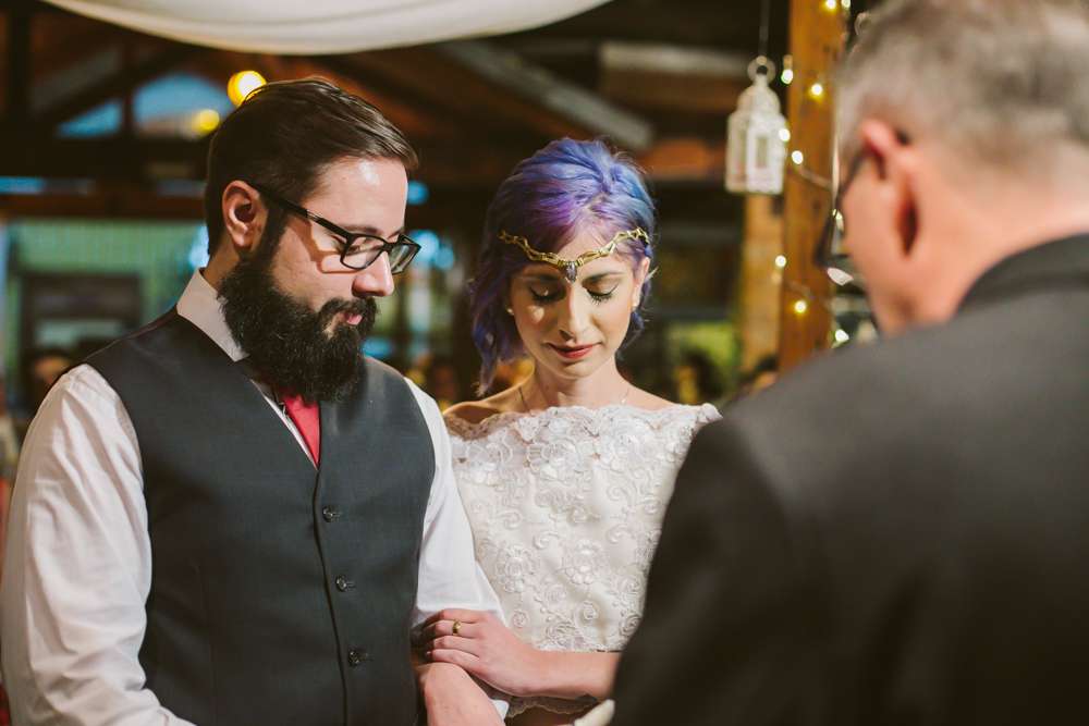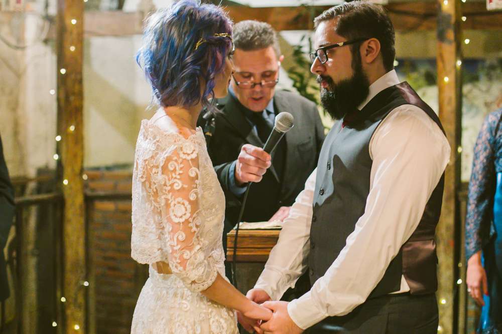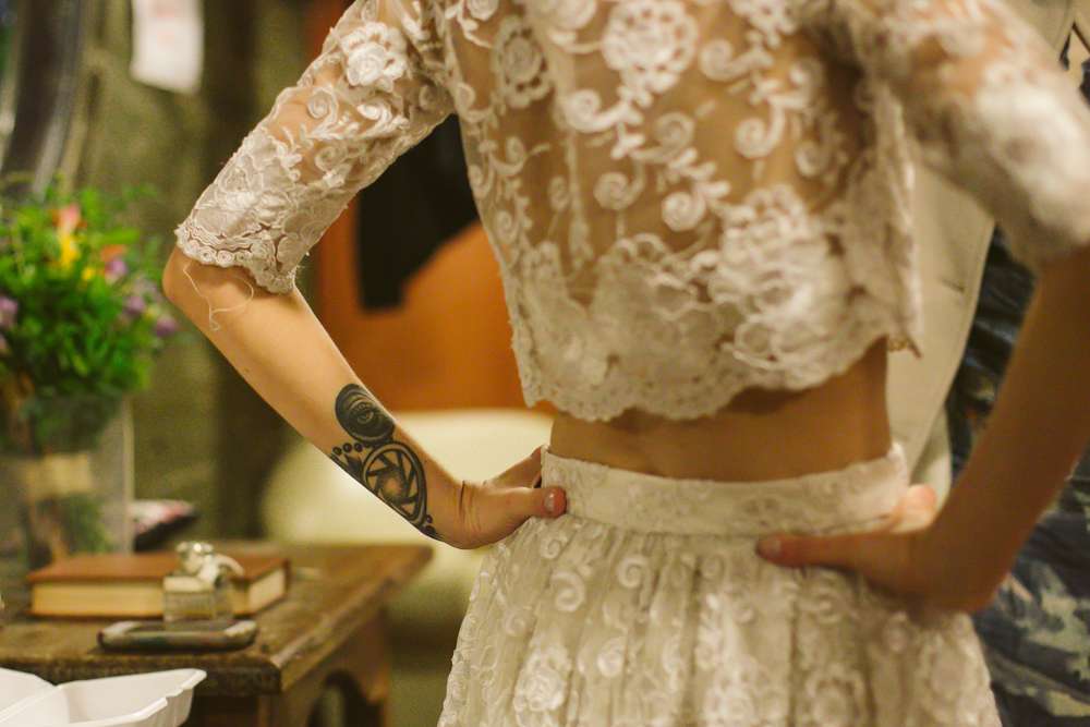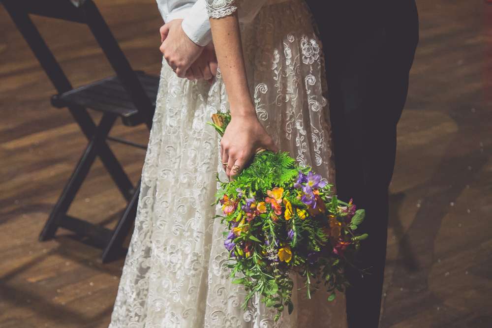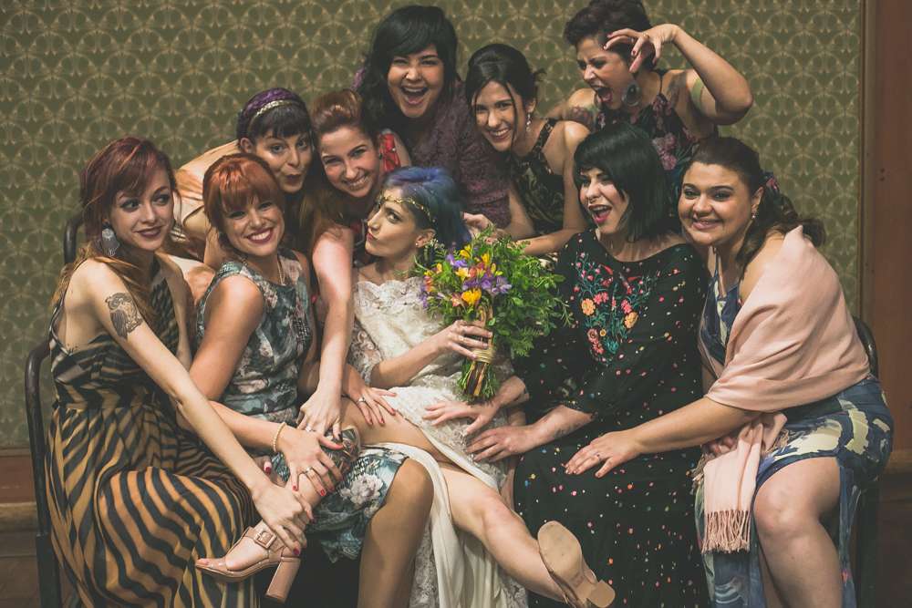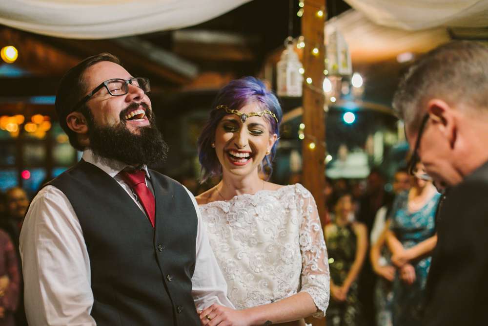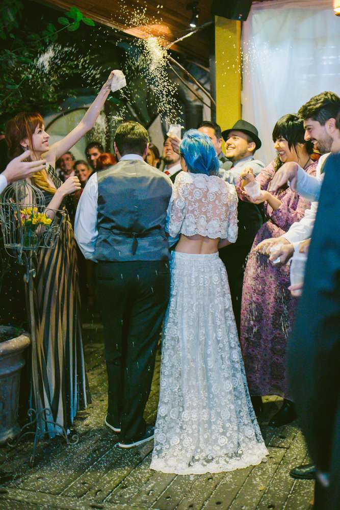 “We didn’t want anything uniform or traditional”, said the bride. “Our venue, Centro Cultural Rio Verde in Sao Paulo was not a usual wedding location so that was different too. It’s a place where lots of independent concerts happen. About three years ago, when we’re just starting to see each other, we went to a concert there and commented that it’d be pretty cool to get married there. That comment was never forgotten!”