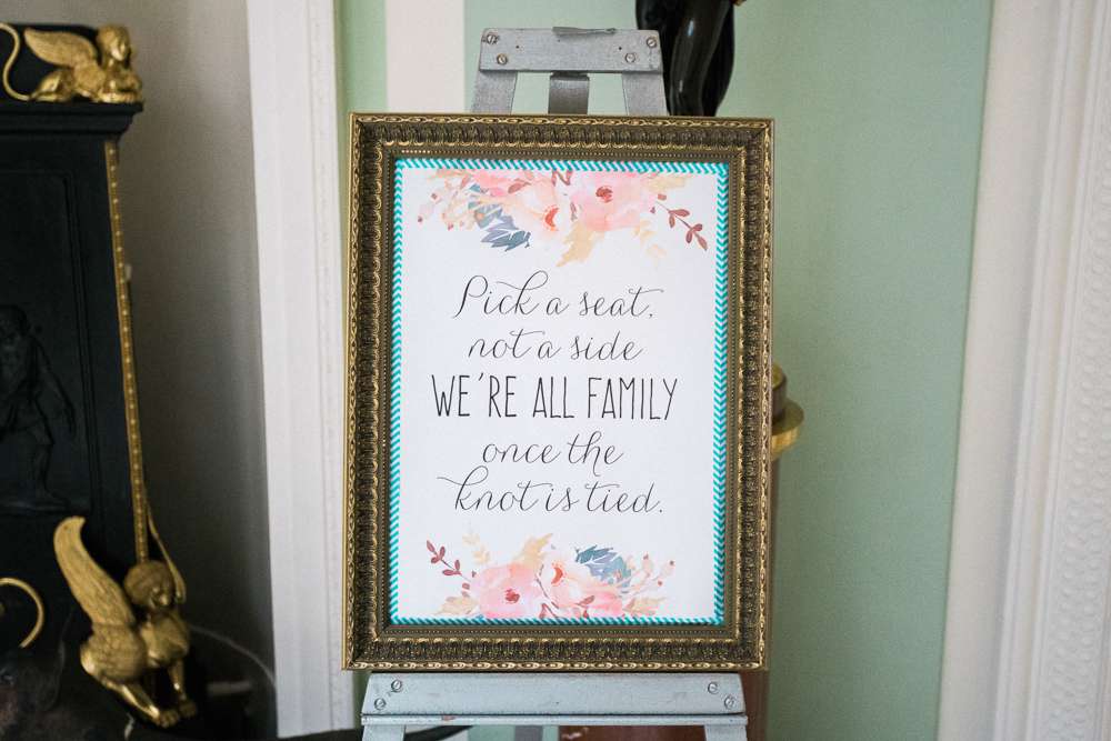 The ceremony itself was lighthearted and fun, but also romantic and intimate. “It was in the beautiful library at Sledmere House. We felt the opulent house was a great setting for this in contrast to the brightly coloured and informal barn for the reception. The ceremony was really beautiful, we had a reading of He’s Not Perfect (Bob Marley) by one of James’ oldest friends, Sam. It brought a lot of laughter but also a few emotional tears too! It was really touching. I think there would have been a few more tears in the ceremony actually, but the venue’s sound system broke, and so didn’t have any music. I was supposed to walk in to Angels by the XX, but the general consensus from our families is that they are glad it didn’t work otherwise they’d all have been blubbering wrecks!”