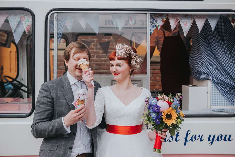 April and James’ wedding was colourful and retro inspired with lots of fun details. The bride wore a dress by Kitty and Dulcie and a veil from Rock n Roll Bride x Crown and Glory.