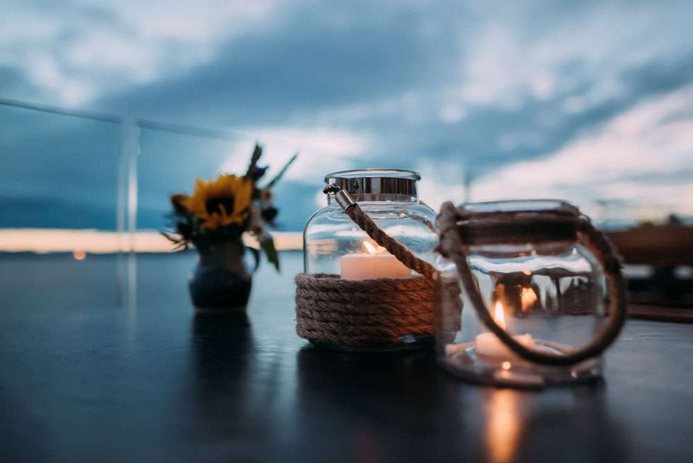 “As soon as we decided to have our wedding back home we knew there was no one else we would rather have do our catering. The head chef at The Newport Restaurant, Jamie Scott, is a friend and most humble human you could ever come across. Having been successful and winning MasterChef a few years ago, he and his wife Kelly have started their own venture in a little restaurant in a small town called Newport on the River Tay. It has a balcony with under floor heating meaning you can have the balcony open at night, yes even in Scotland! It has the most breathtaking views, especially at sunset, which set up the perfect back drop for our reception dinner and then later a first dance under the stars surrounded by candle light. Every single guest commented on the service and how great the front of house staff were too. Everyone felt that the team couldn’t do enough for them.”