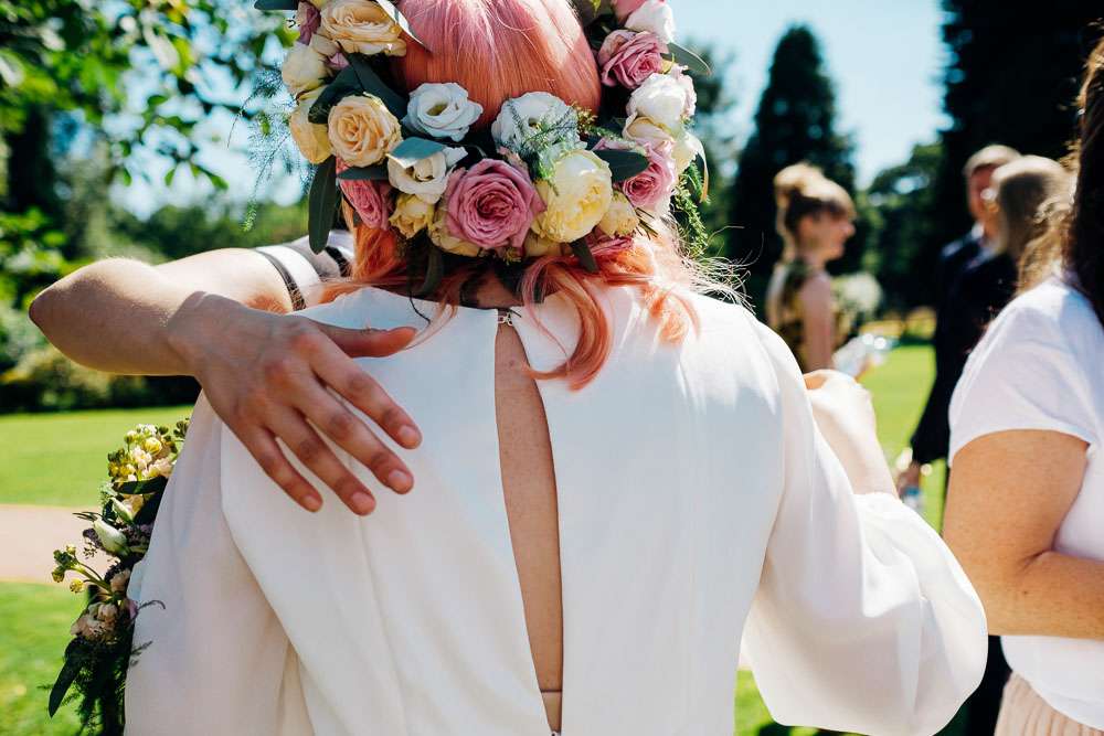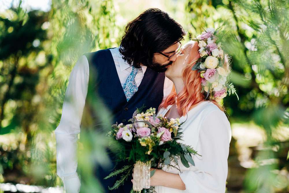The ceremony was held outside, amongst the trees. “We found it quite hard not to follow the usual service/ drinks/ food/ dancing formula, but I think most people agreed it was a fairly unconventional wedding in a conventional format. Our ceremony was amazing, for both of us it’s up there as our favourite part of the day. That’s really down to our brilliant humanist celebrant, Zena Birch. She took the time to really get to know us and ‘our story’, so the whole ceremony felt incredibly personal.”