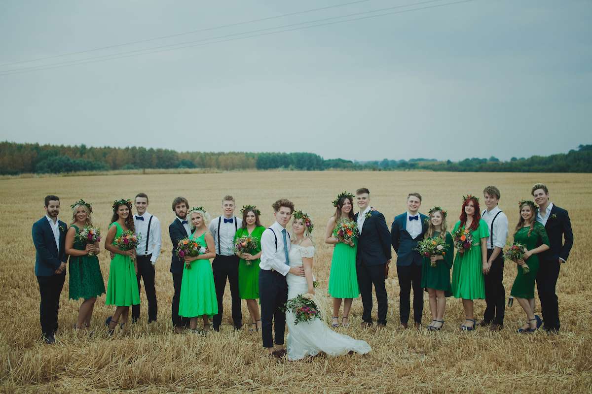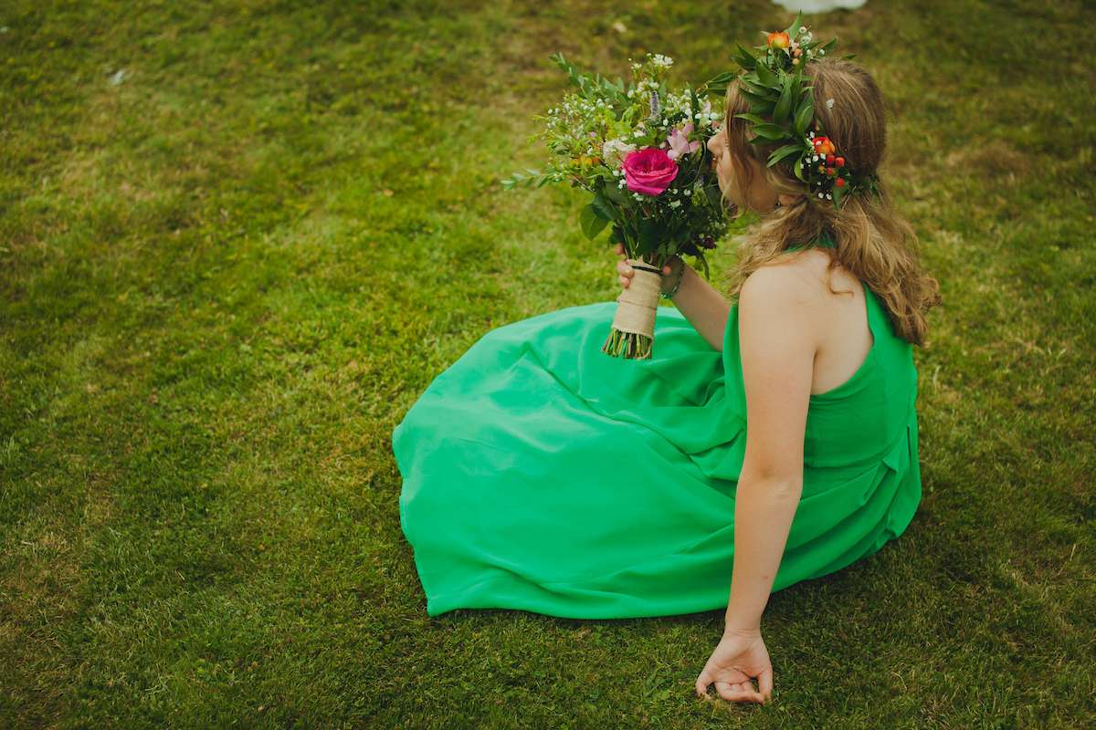 “Our whole wedding felt like a DIY project! One of my bridesmaids, my childhood friend Sophie Clifford, did my make on the day. My stepsister and bridesmaid Nicole Vanner, who is a genius baker, created our cake, she even moulded a little frog and fox (which represent us) out of icing! My mum and her good friend Jaqui made 13 bouquets and flowers crowns, 14 buttonholes, massive pieces in old milk-churns and hundreds of flower-filled bottles and jars. Another of my bridesmaids, Lucy, created the cutest fairy-like invitations that literally illustrated a timeline of our day, which is exactly what we wanted as we like to think of ourselves as a pair of elves.”