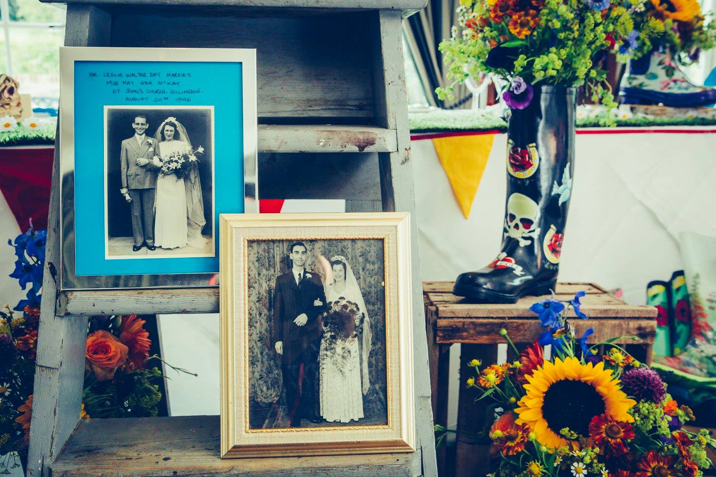 “We also didn’t know this at the time of booking our wedding date, but we got married on the same day as both our grandparents! If ever there was a sign that said meant for each other, that was it! Jack’s grandparents would have been celebrating their 70th wedding anniversary, and mine their 67th. We decided to have our top table centrepiece as a tribute to them, and had pictures of both of them on their wedding day along with a picture of me and Jack. It was a way of them being with us, as sadly my grandmother, who at 95 was too fragile to be there, is now the only one still with us.”