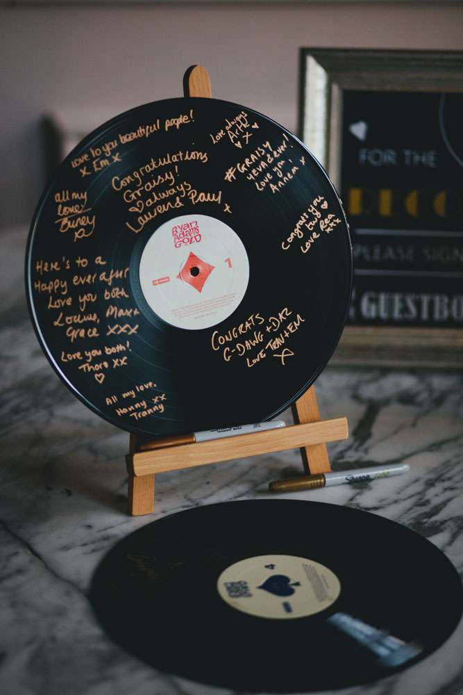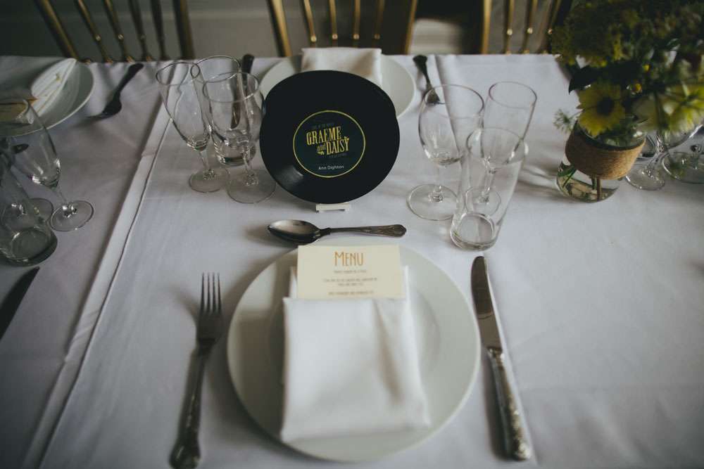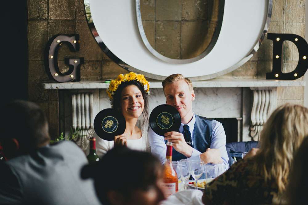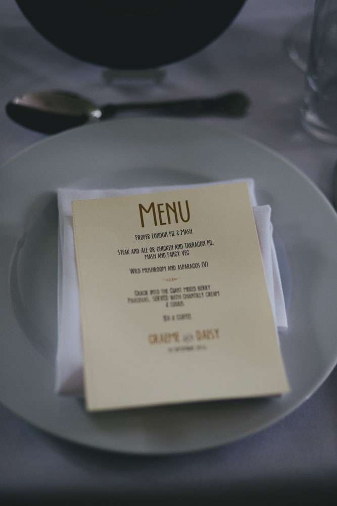 They were married at Stoke Newington Town Hall with their reception at The Roost in Dalston, which is already decked out in vintage props. This mean they didn’t need to do much else to the space. “Some of our favourite aspects were our open mic session, the full on pie and mash for the catering and our wedding place names.”