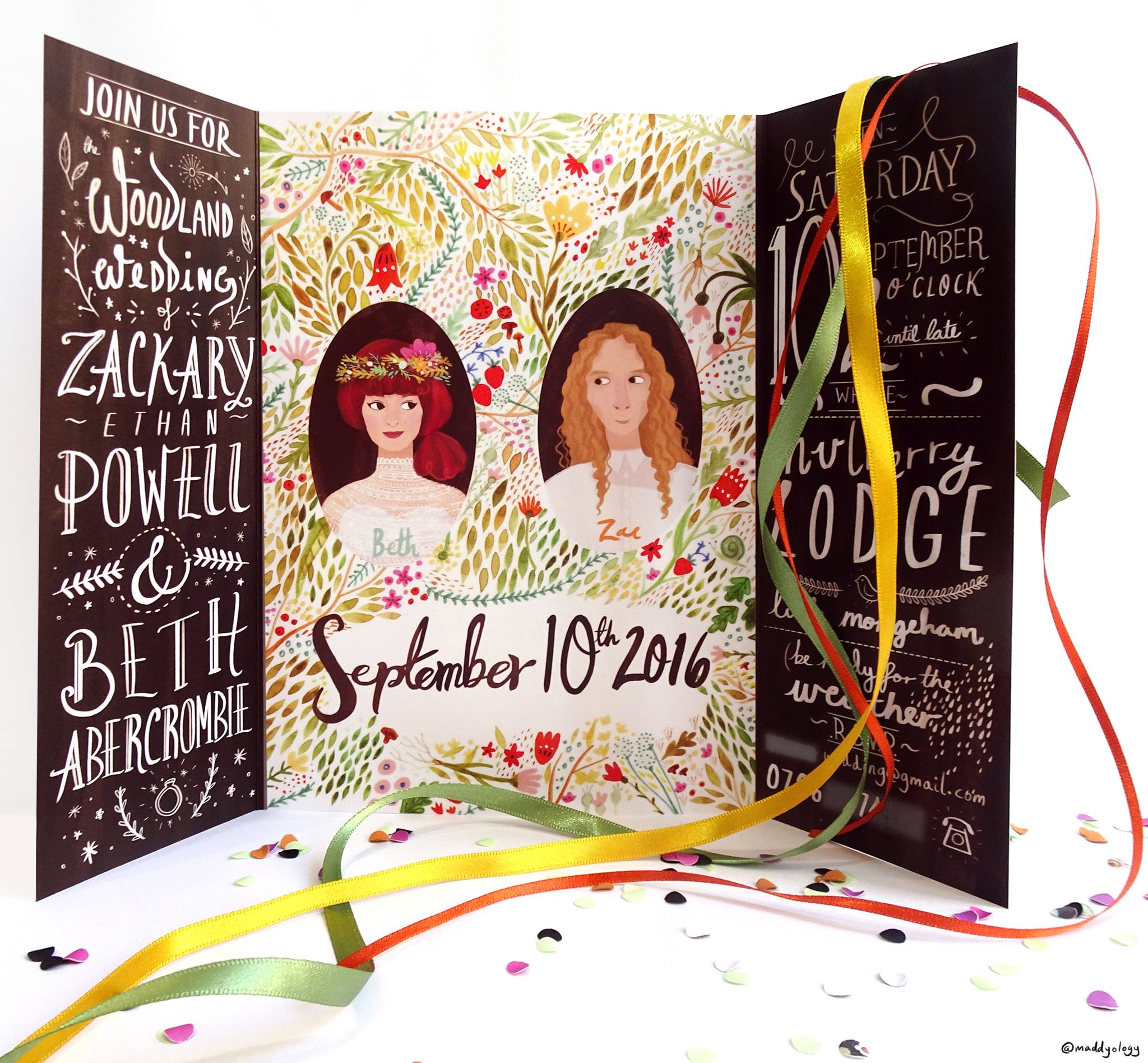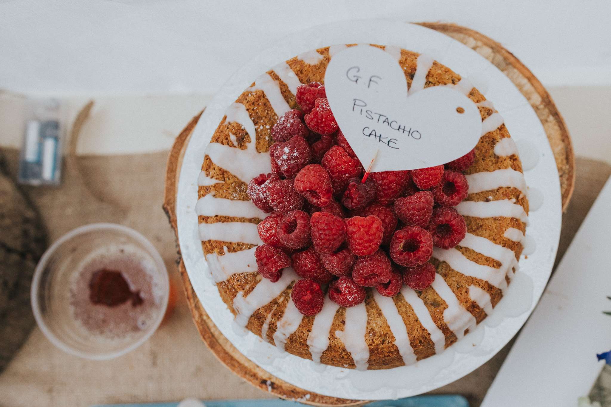 The couple’s many DIY projects also helped them save money. “Our budget was £8000 and as so much of everything was made by us or friends and family, from the invitations to the decorations to the food, we were able to tailor everything to our exact specifications without shelling out a ton of cash. The other upside was that everything was under our control and care, so if something was going wrong we knew immediately and could fix it! We also did a massive Tesco shop the night before to get all the bread, condiments and soft drinks and on the wedding morning I went with my bridesmaids to the market to buy all the table flowers. We got some real bargains with our clothes too; every piece of Zac’s outfit came from a sale!”