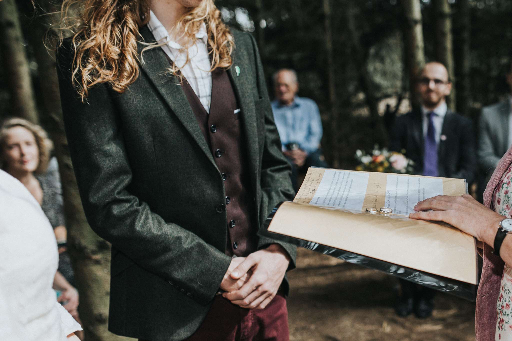 The couple had a simple hand-tying ceremony followed by an exchange of rings. “We wrote the ceremony ourselves! We looked at several humanist and secular sample scripts, and pieced together the parts we liked to help devise our own unique ceremony script. We also didn’t have a band, but we did have an iPod and a speaker. I walked down the aisle to Sea of Love by Cat Power, and we left to Flowers in my Garden by Johnny Flynn. It was so lovely!”