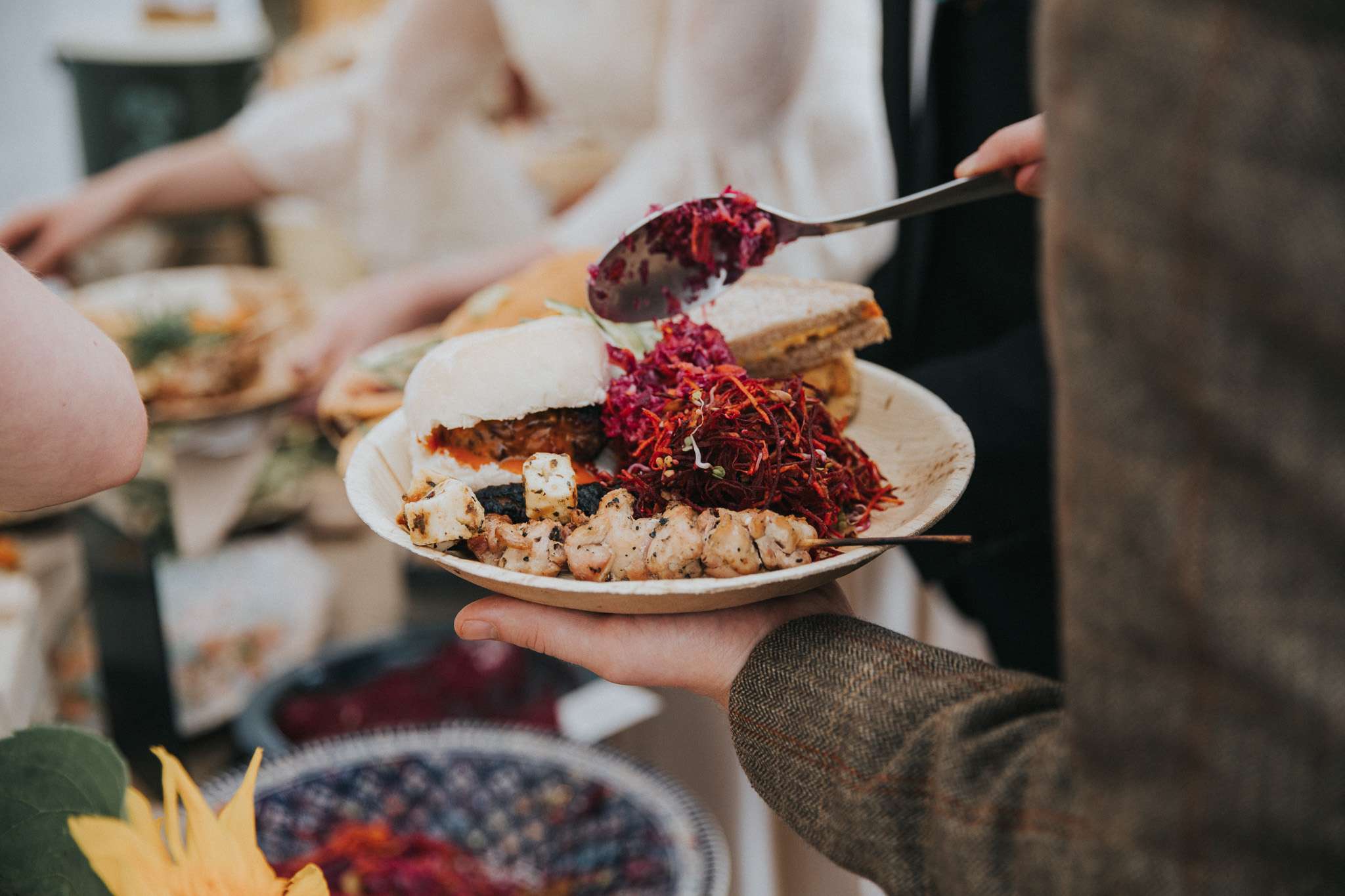 Beth and Zac wanted their wedding to be relaxing and described their wedding theme as ‘fun, festival like, colourful, DIY and eco-friendly. “My main inspiration was the big BBQs and garden parties my parents had when I was growing up – everyone could just relax, help themselves to food and drink and just have a good time!” explained Beth. “I’ve never really like being the centre of attention, or feeling like I’m causing a fuss (table service in a restaurant is awkward enough for me) and Zac has never been one for formalities. So we both knew we wanted something relaxed and easy going.”