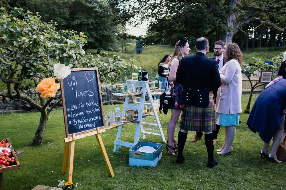 “My Granddad grew loads of the beautiful flowers himself”, she continued. “He spent months caring for them, even talking to them, which he swears by! I remember seeing them all for the first time – they were so vibrant and colourful. He did such an amazing job. My dad also did loads of DIY projects for us. He sourced and built a couple of ladder shelves – one for a gin ladder and one for desserts. He also made amazing bramble gin and homemade Limoncello which acted as favours on the tables.”